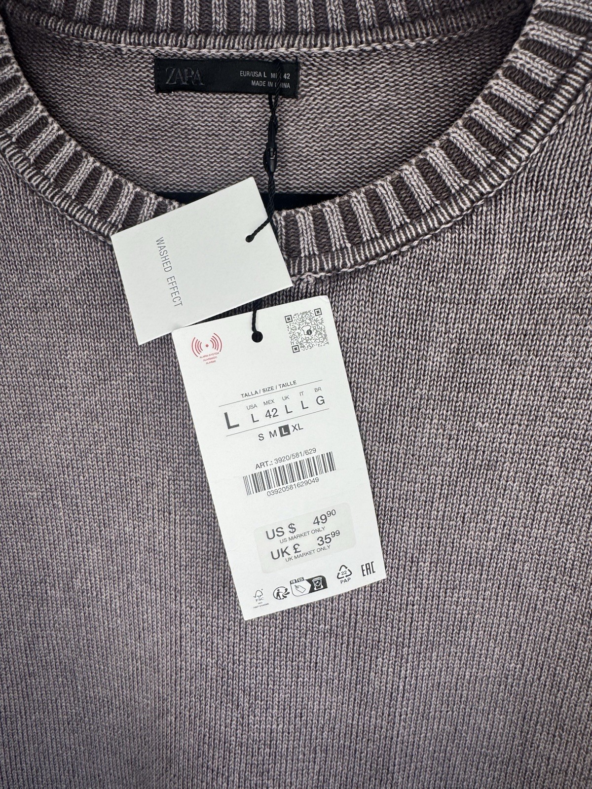 как выглядит Zara Mens Size Large Crewneck Textured Knit Khaki Green Sweater Relaxed Fit фото