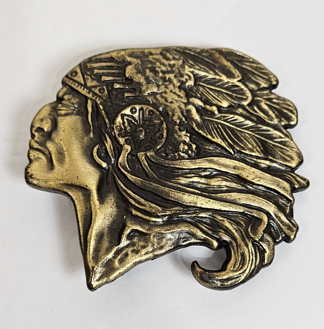VINTAGE INDIAN CHIEF BELT BUCKLE NATIVE AMERICAN BRASS MOTORCYCLE UNBRANDED HTF
