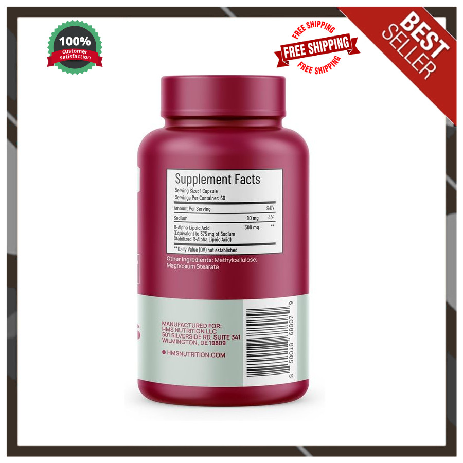 R-Lipoic Acid 300mg Antioxidant for Nerve, Energy Metabolism, Non-GMO Vega