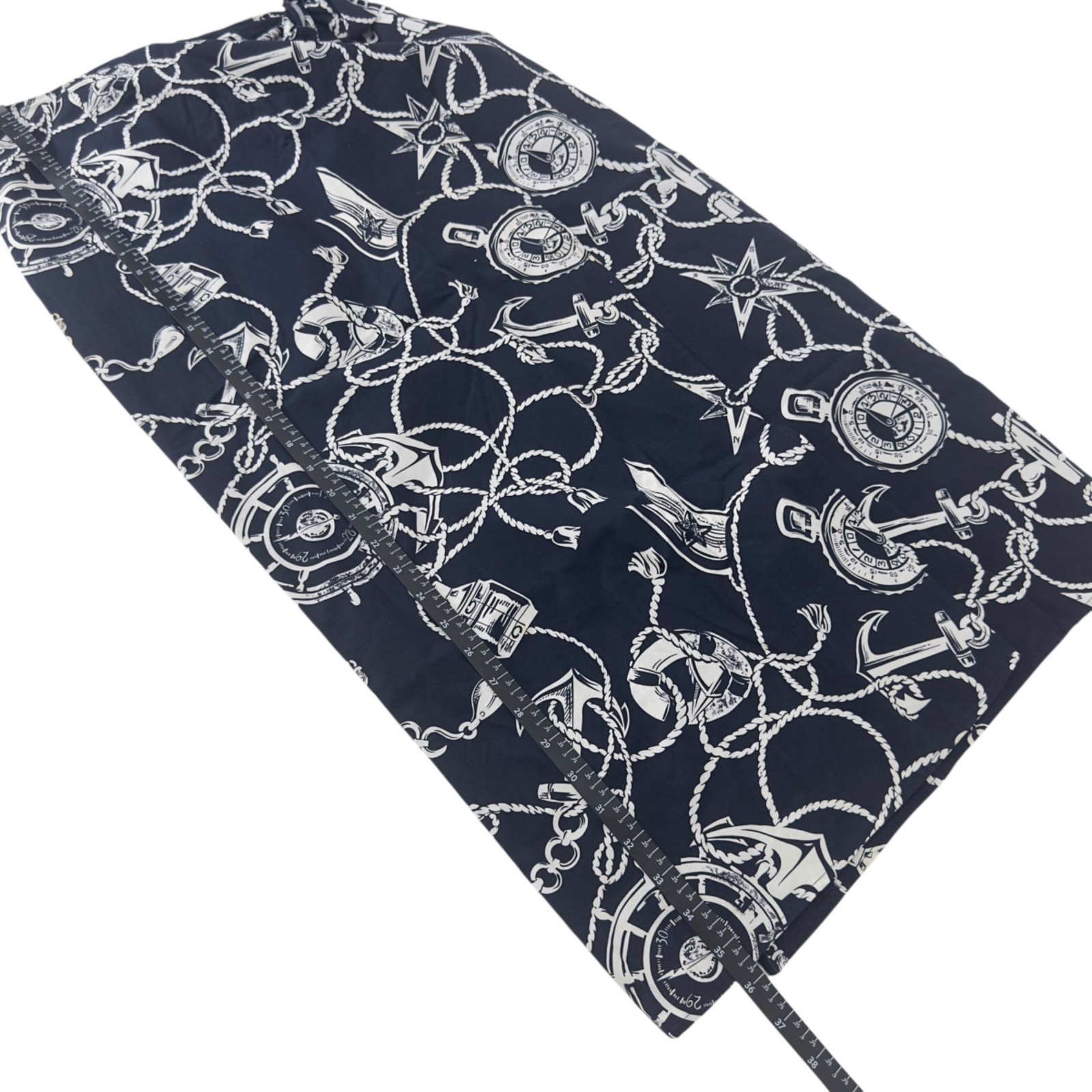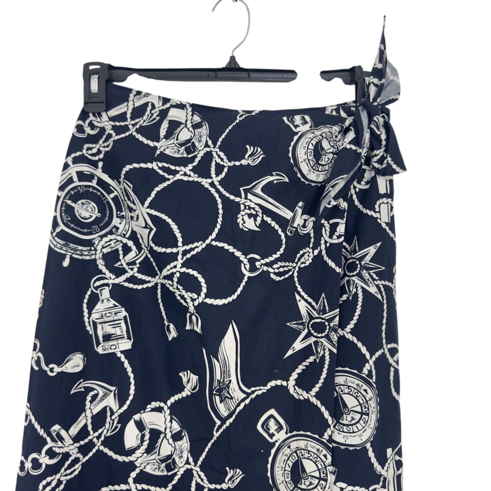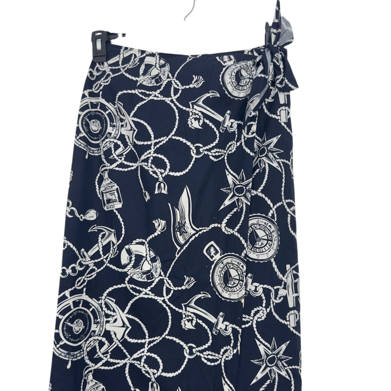 Talbots Vintage Womens Nautical Navy-White Print Wrap Midi Skirt Sz 4 Tie Waist