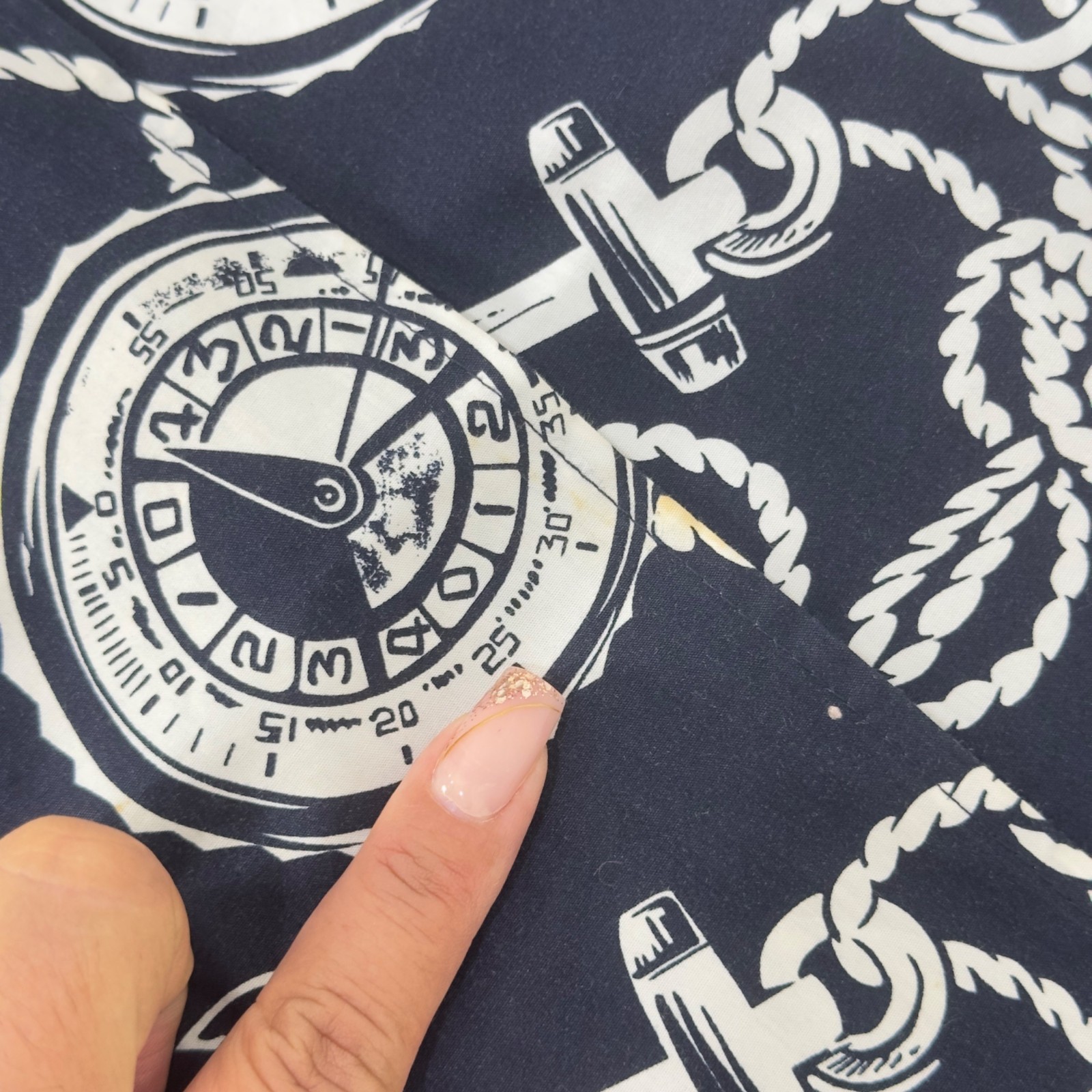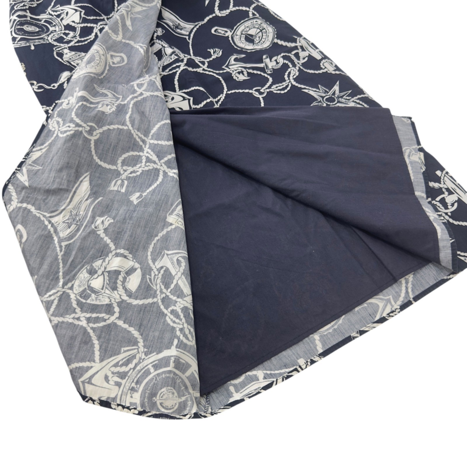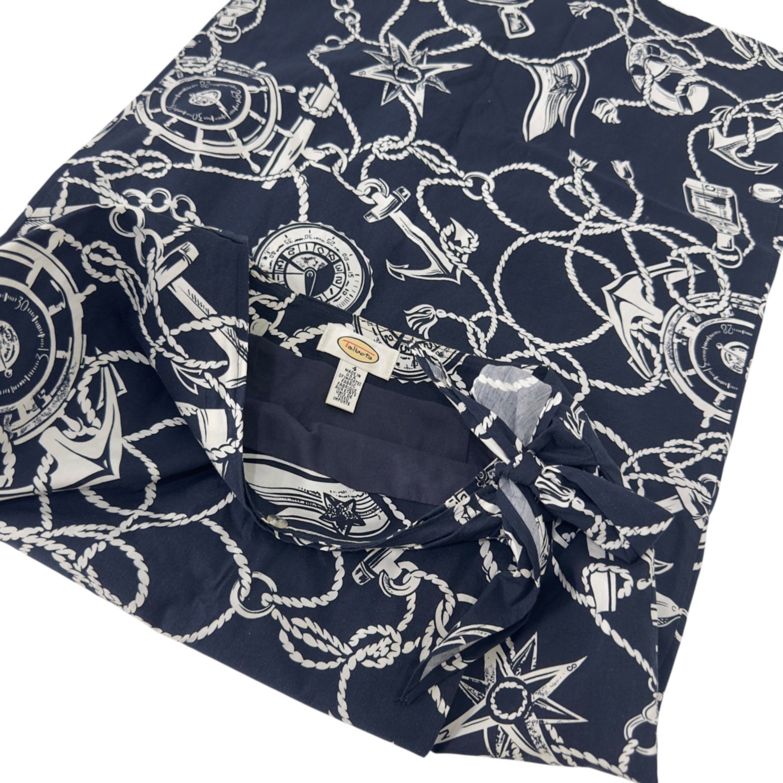 Talbots Vintage Womens Nautical Navy-White Print Wrap Midi Skirt Sz 4 Tie Waist