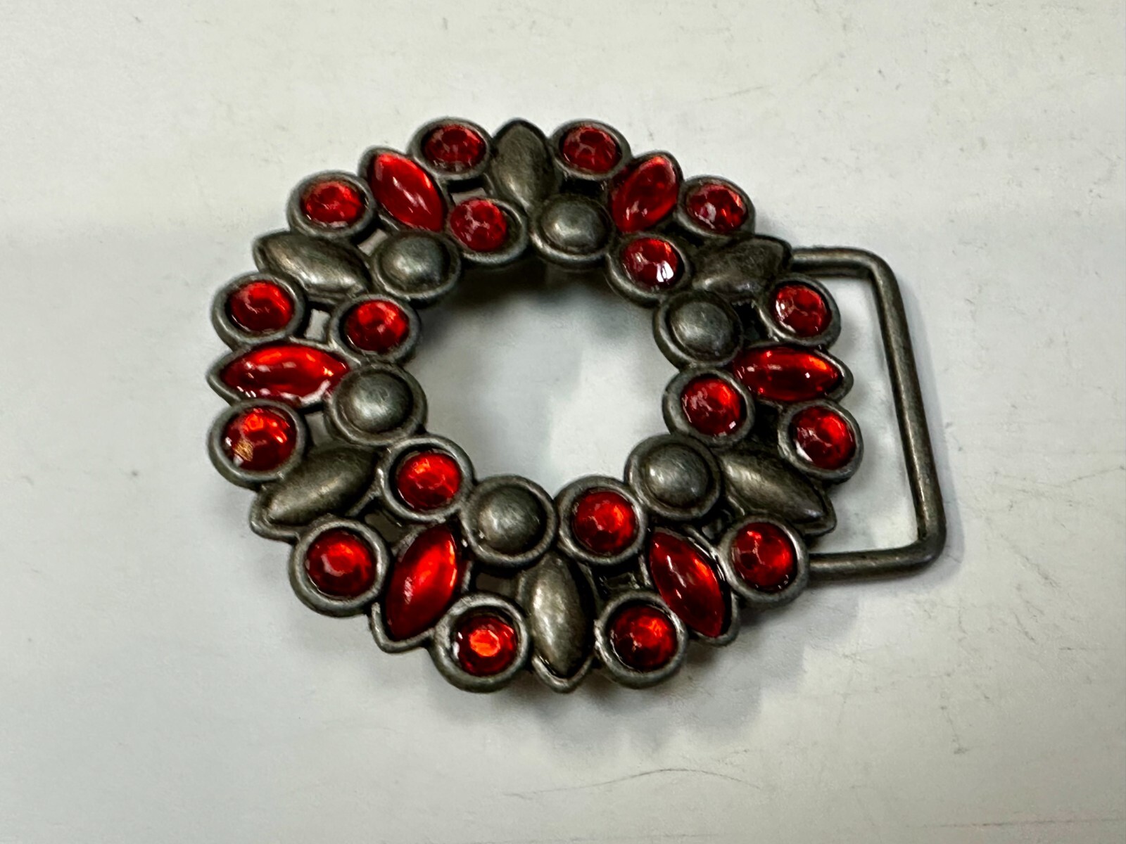 как выглядит Round - Ish Floral Theme Red Rhinestone Accented Silver Color Small Belt Buckle фото
