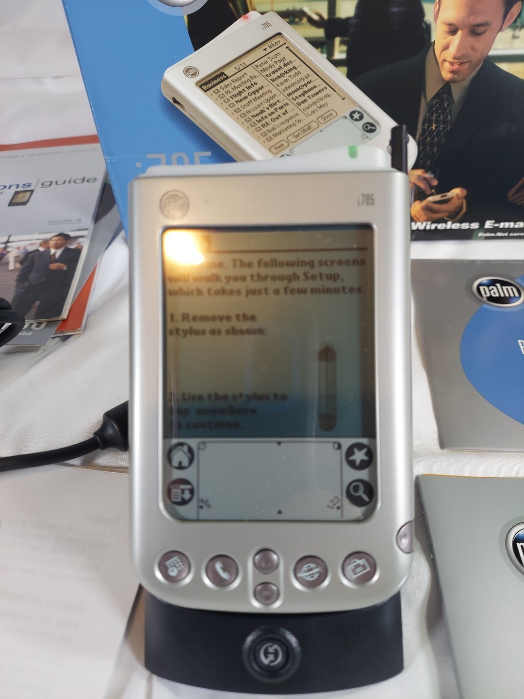 как выглядит Palm i705 Handheld PDA, Vintage T Used W/Box/Manuals/CD Battery Is No Good фото