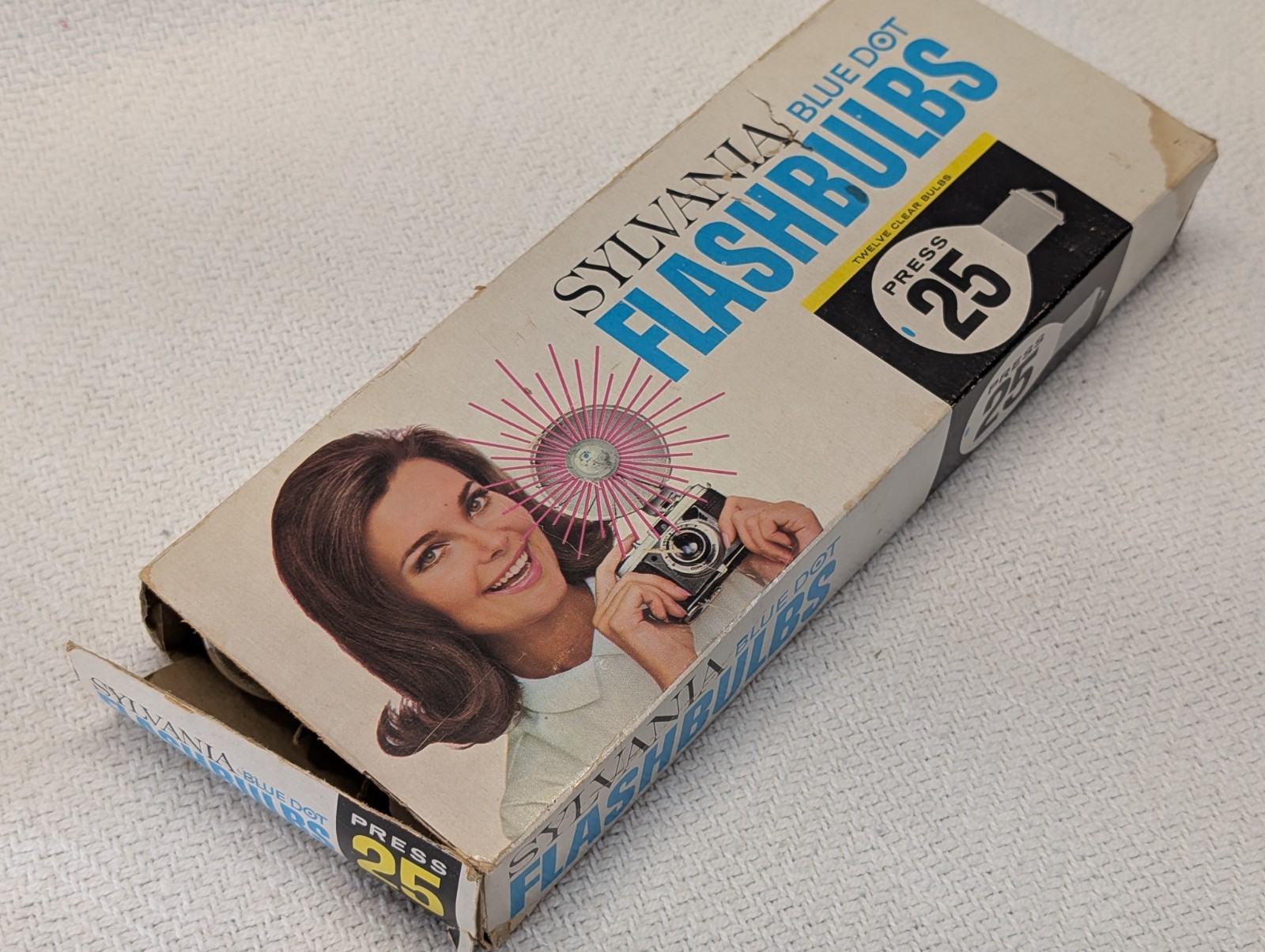 Vintage Box of 12 Sylvania blue dot flash bulbs number 25