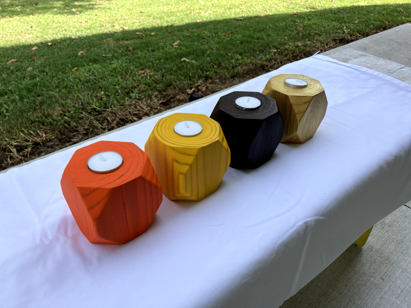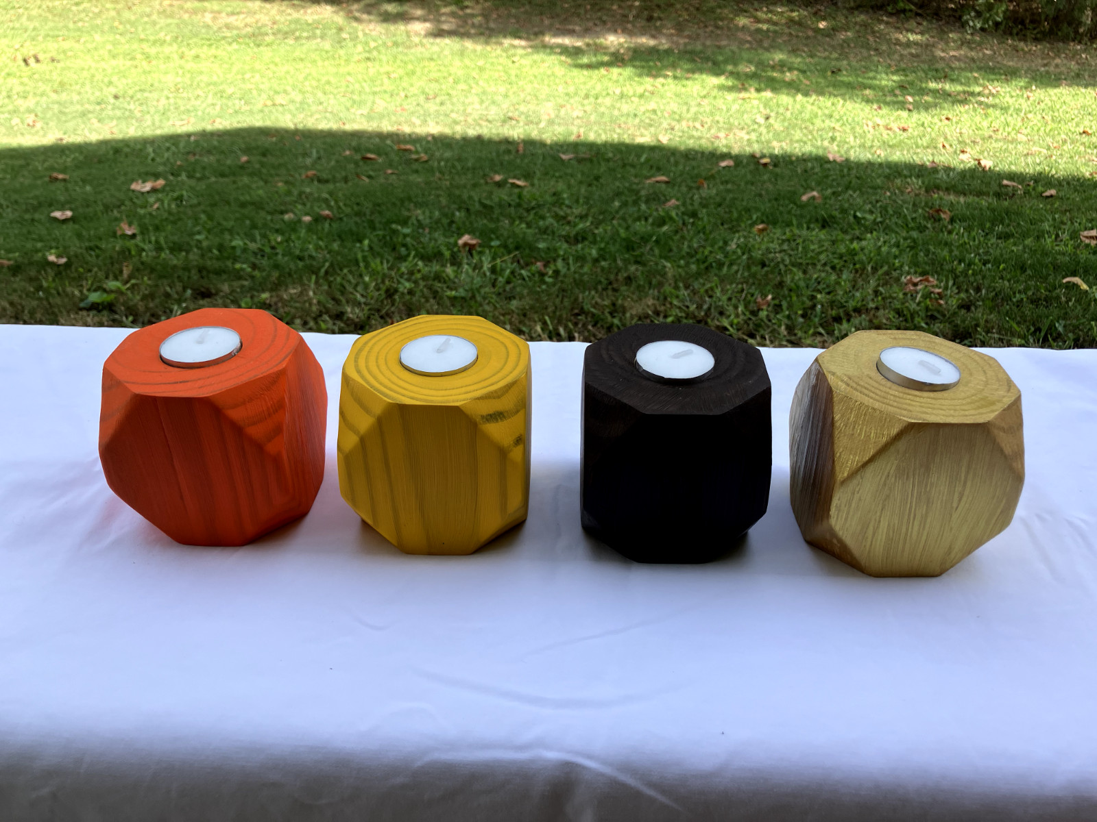 wood tea candle holders handmade fall colors