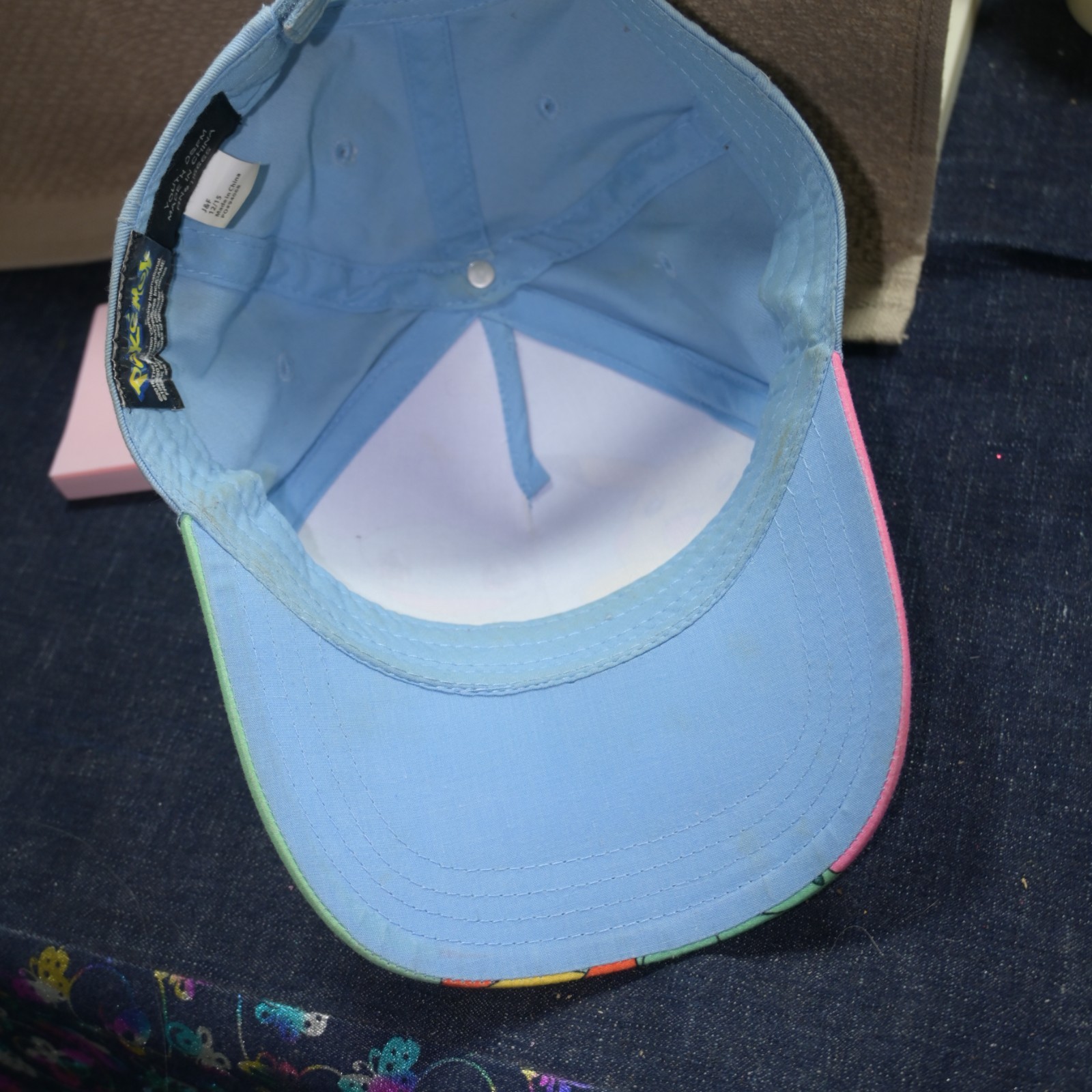 Pokemon youth hat with characters ont he front hook and loop adjustable