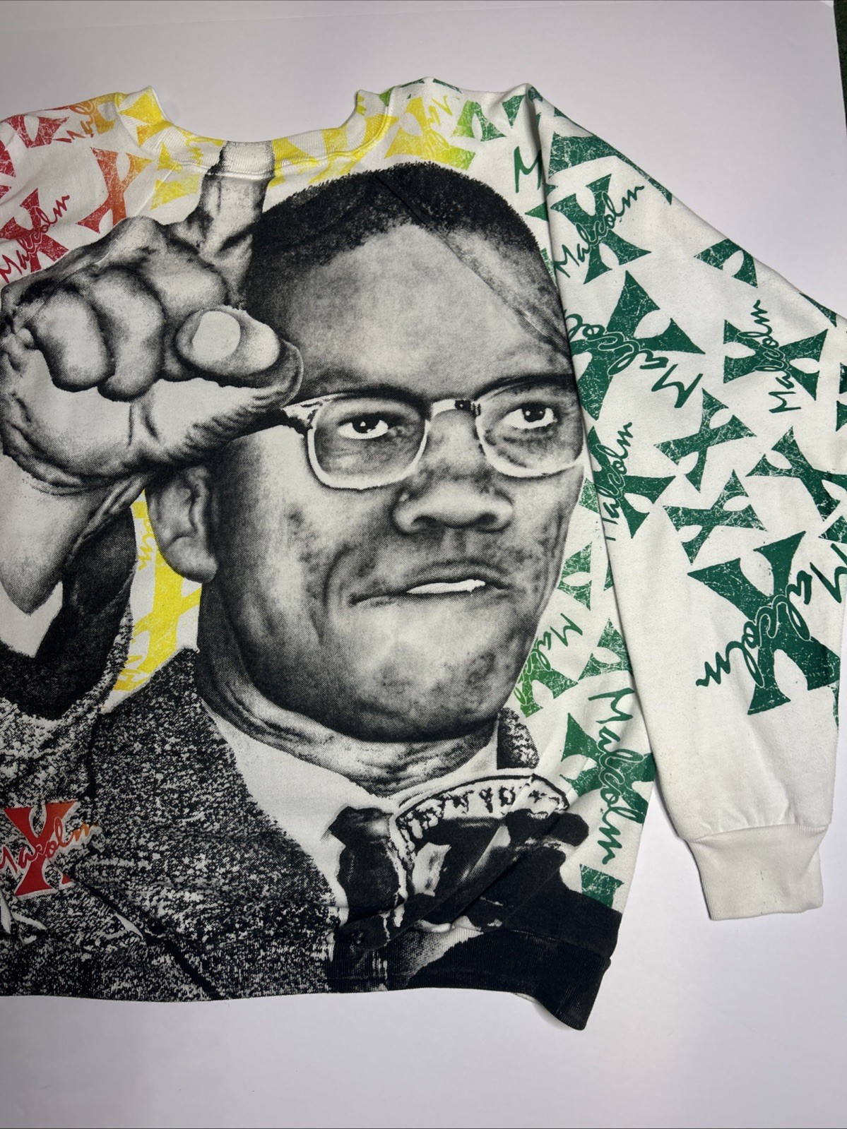 как выглядит Vintage 90s AOP All Over Print Malcolm X Graphic United Spirit Sweatshirt XL фото