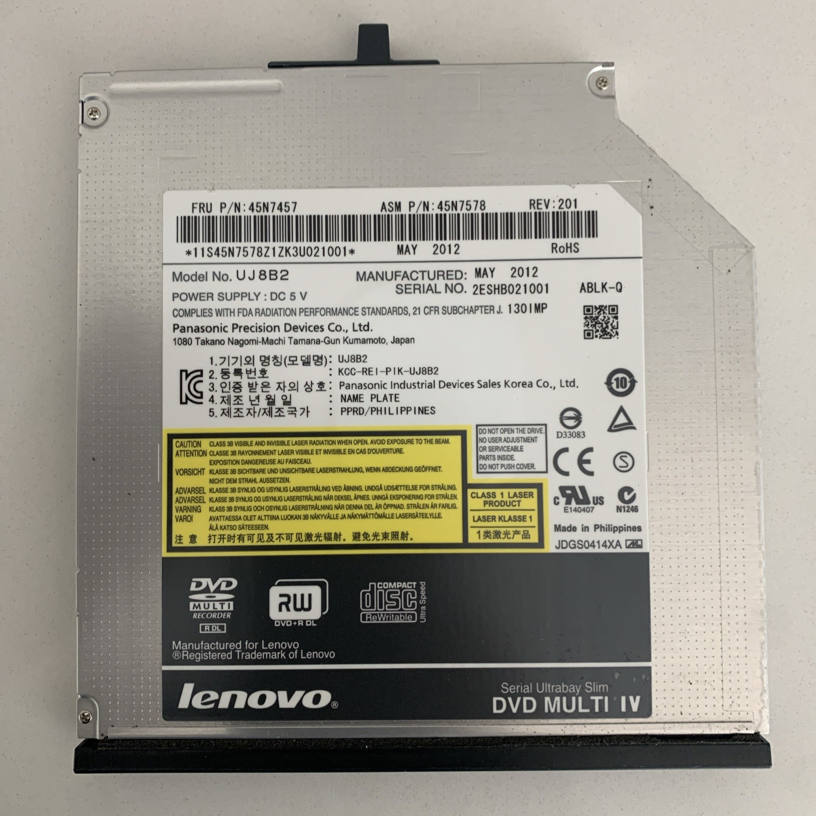 Lenovo ThinkPad SATA CD-RW DVD RW Optical Drive UJ8B2 45N7578 45N7457 45N7451 US