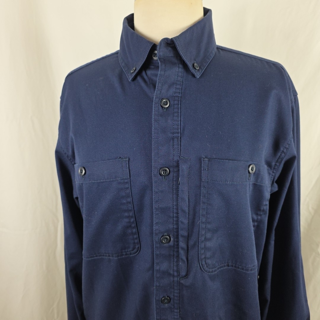 как выглядит Carhartt Button Down Mens Long Sleeve Work Pocket Shirt M Medium Navy Workwear фото
