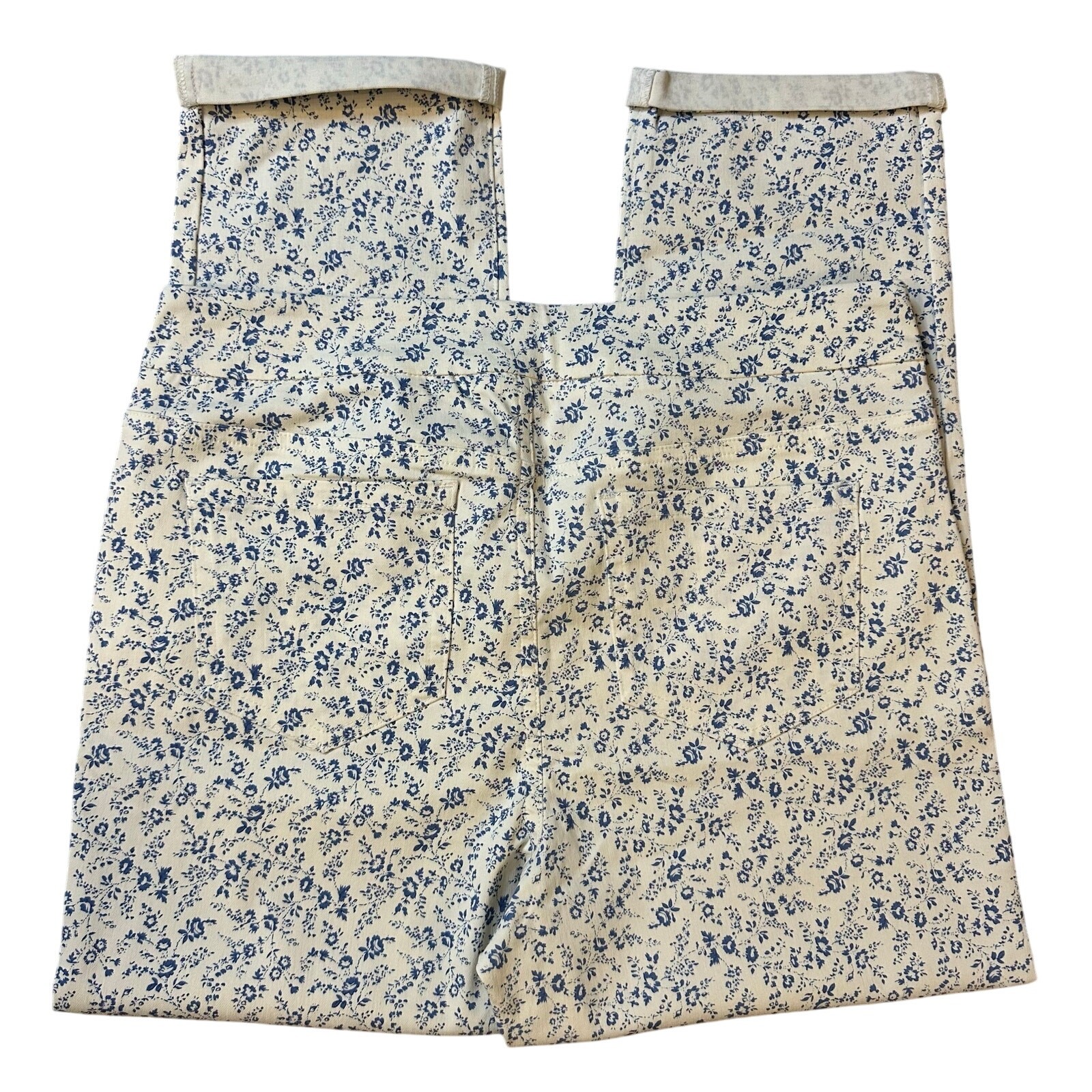 Mario Serrani White/Blue Floral Print Straight/Stretch Pants- M