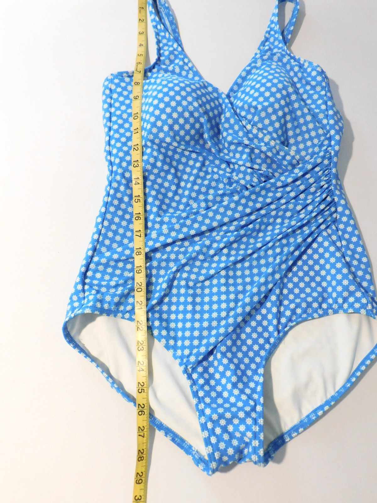 как выглядит Miraclesuit Blue and White Womens Ruched Tummy Slimming фото