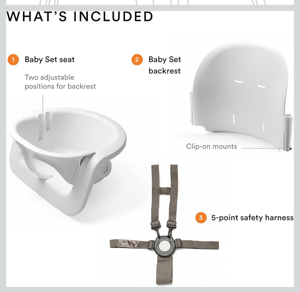 как выглядит Stokke Steps Baby Set, In White Nordic Grey cushion set included фото