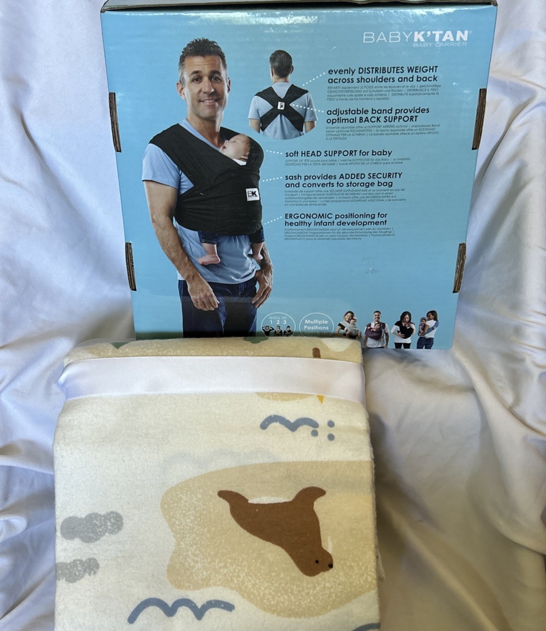 Baby K'tan Original Carrier Natural Sz XS Black And 4 Pack Flannel Blankets