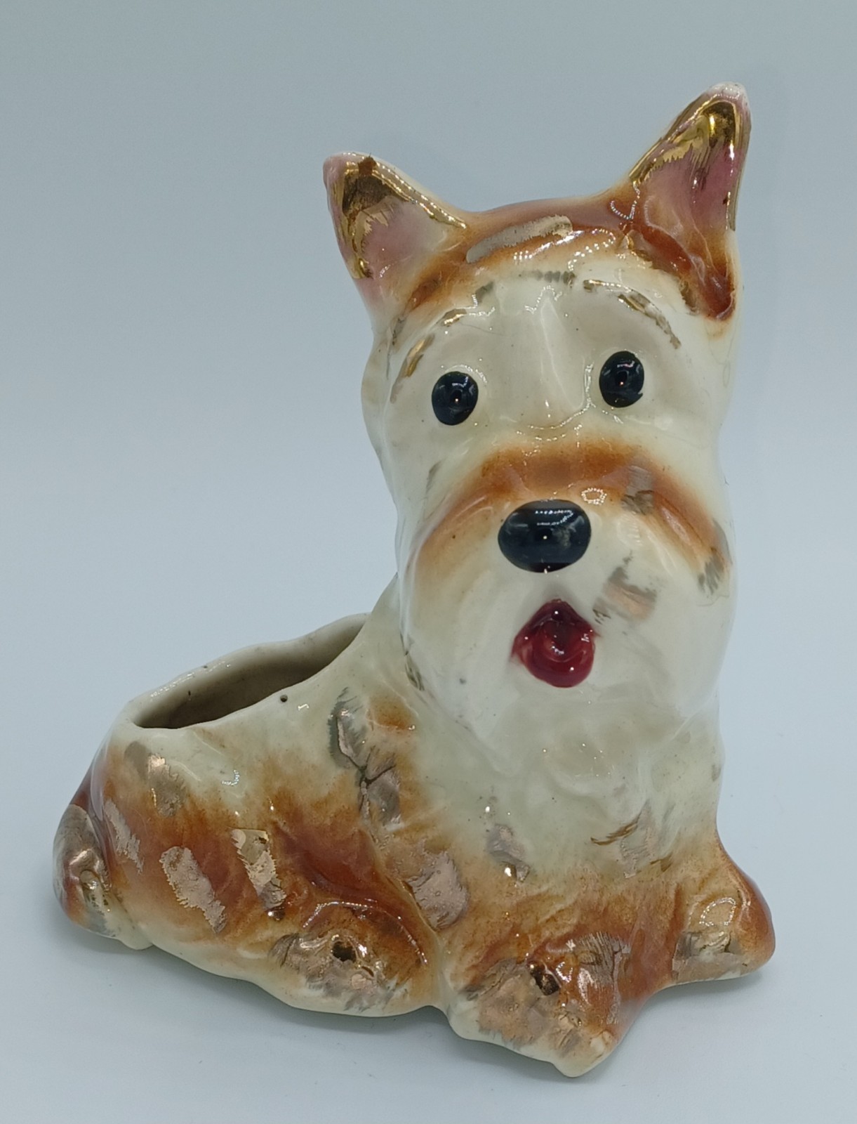 • Ceramic Scottish Terrier Vintage Planter- 1950s Scotty Figurine 6 in Tall