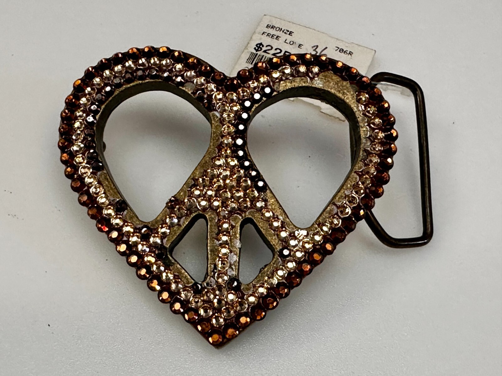 Peace Love Sign Heart Shaped Bronze Color Bridget Belt Buckle Missing Rhinestone