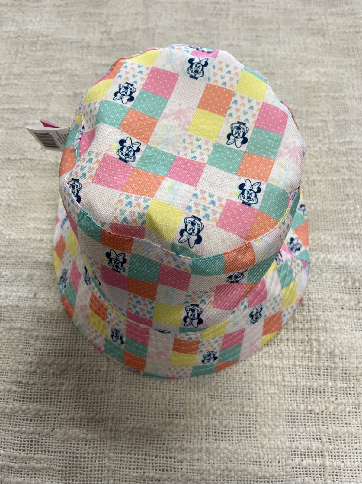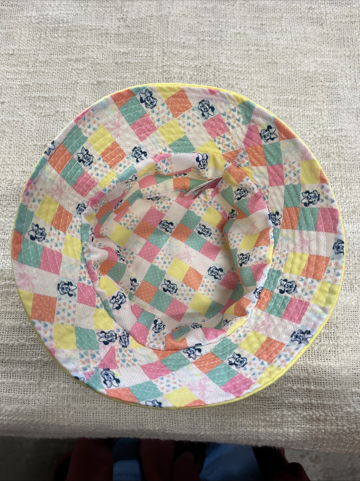 Girl s Yellow Pastel Plaid Disney Minnie Mouse Reversible Bucket Hat One Size