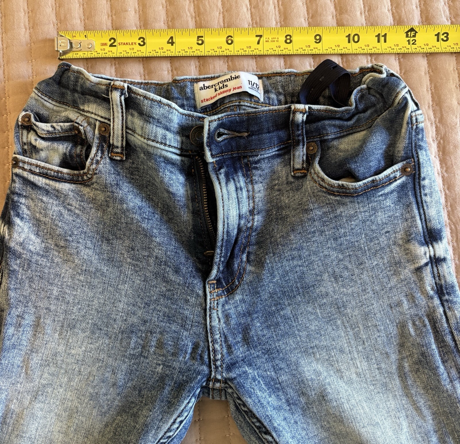 как выглядит Abercrombie Kids Light Wash Skinny Distressed Jeans Adjustable 11/12 фото