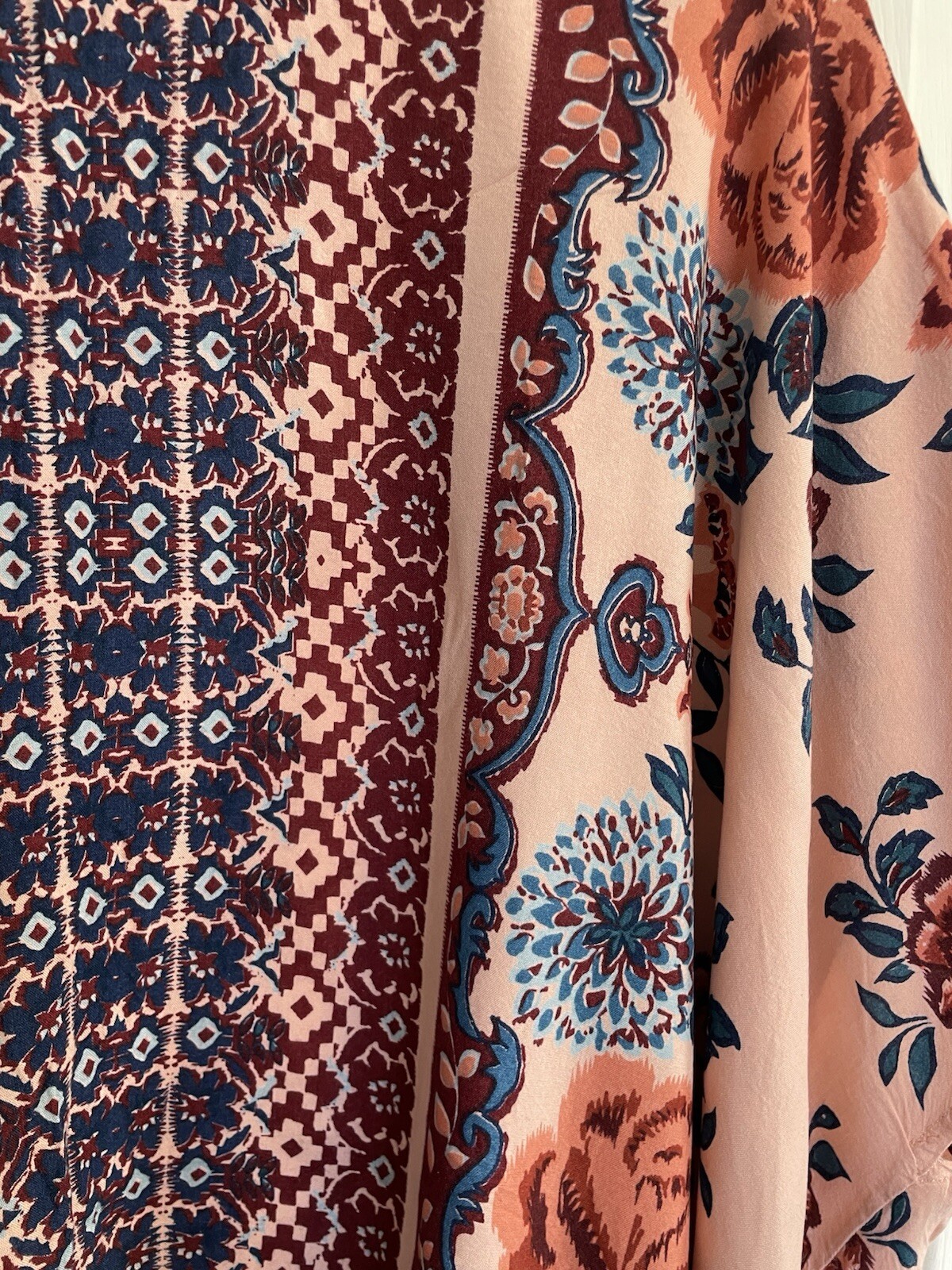 как выглядит ANGIE Colorful floral Kimono Large Hippie Festival Pink Blue Turquoise Boho фото