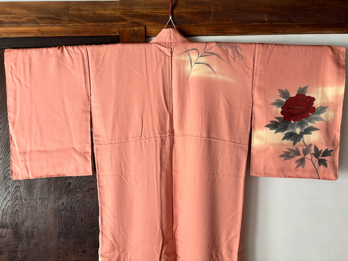 как выглядит Japanese KIMONO Silk Kimono, Gown Robe Vintage ,length 163cm фото