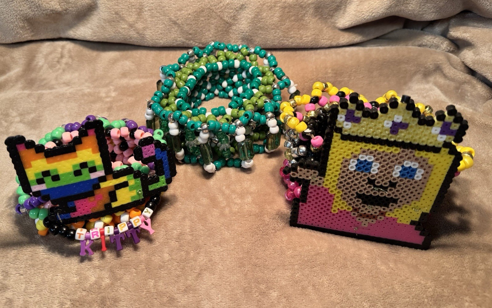 Rave Kandi Bracelets 3 Rainbow Kitty Princess Fuse Beads