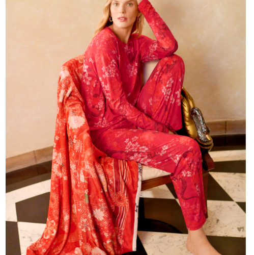 как выглядит JOHNNY WAS Raglan Red Print PJ Pajama Set Top Pants Sealed NWT 198 Small фото