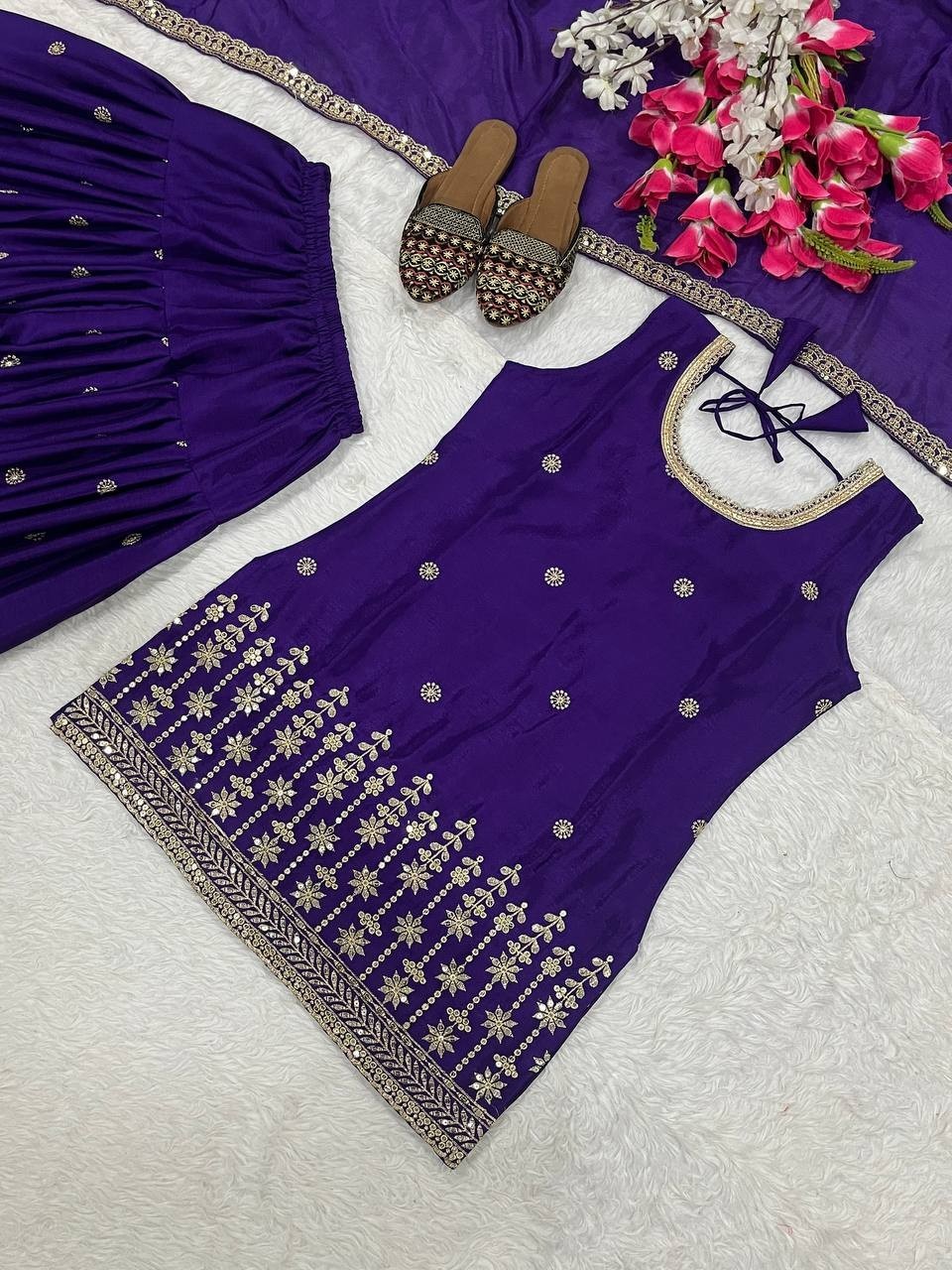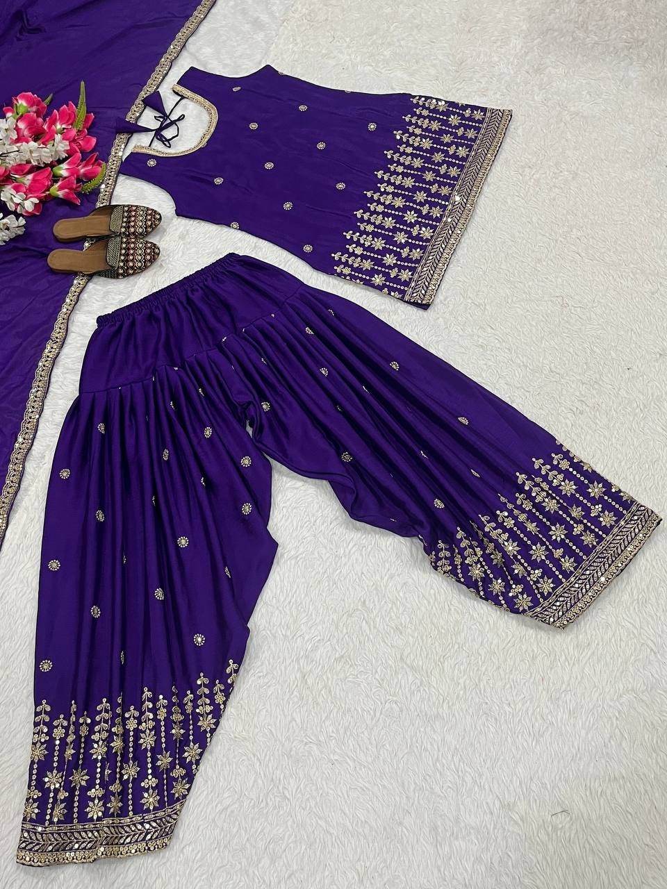 Designer Heavy Chinnon Silk Top And Dhoti With Dupatta For Women Girls