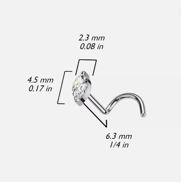 G23 Implant Grade Titanium Marquise Gem CZ Nose Screw Nostril Ring 20g Jewel