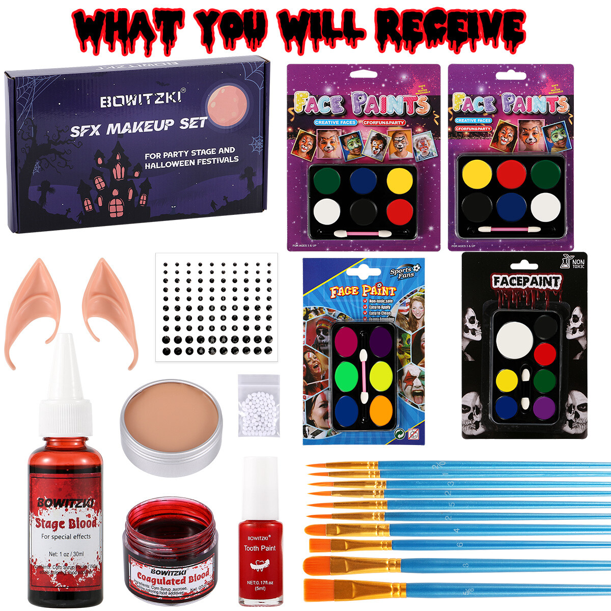 Pro Halloween Makeup Kit Fake Blood Red Tooth Paint Scar Wax Brushes Face Paint