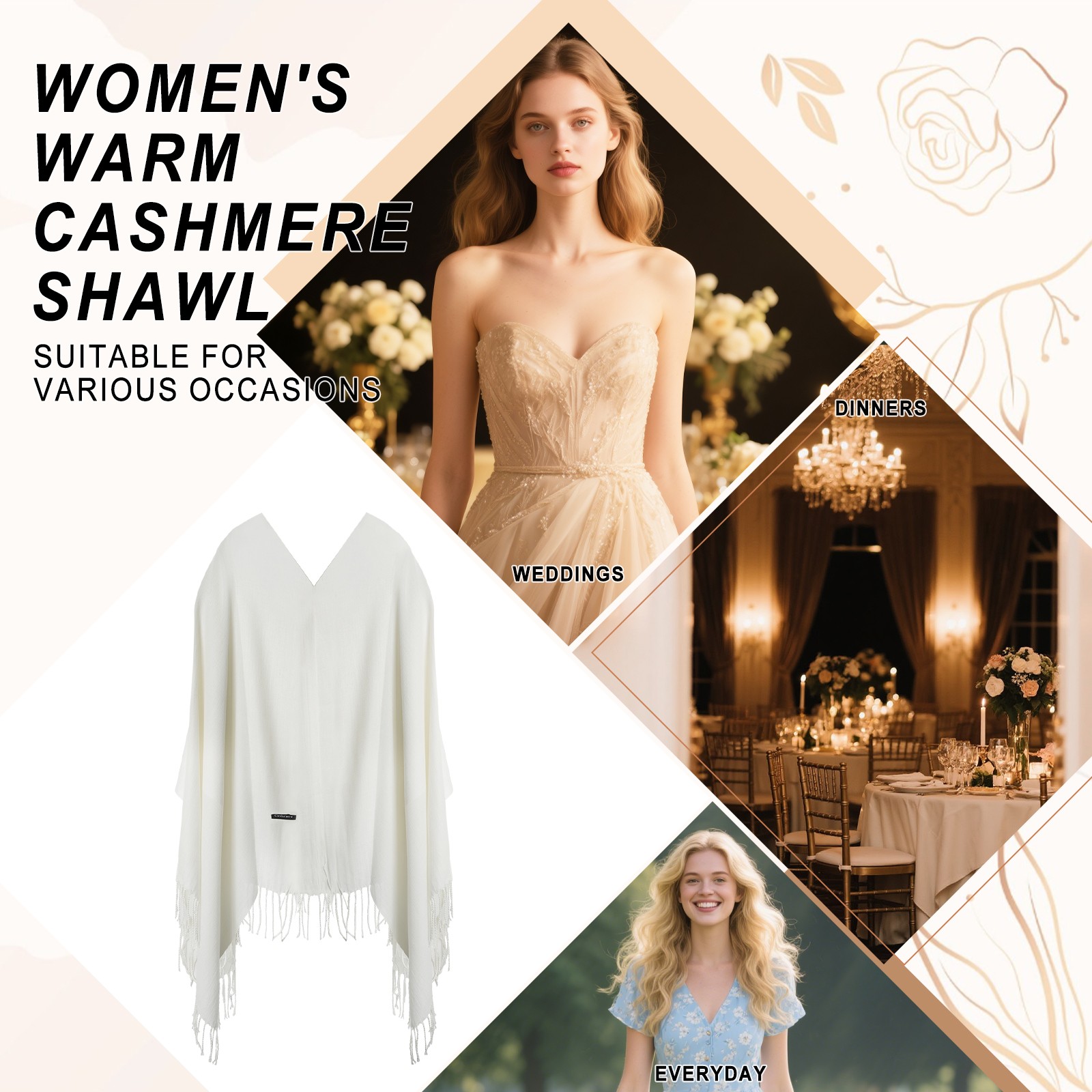 Womens Warm Scarf Pashmina Shawls Wraps for Evening Dress Bridesmaid Wedding
