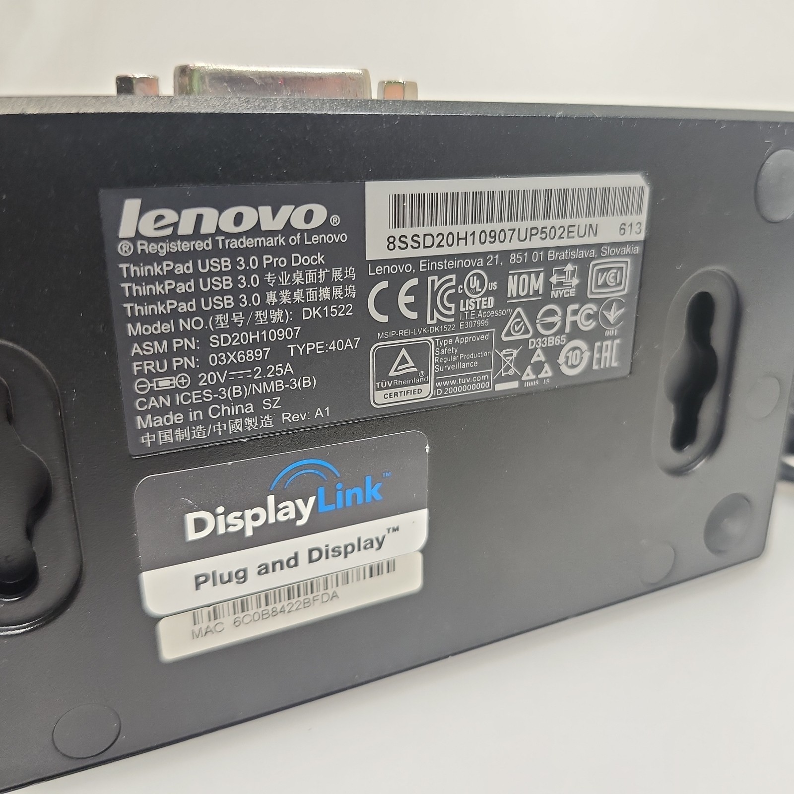 Lenovo ThinkPad 40A7 USB 3.0 Pro Dock DK1522 With Power Adapter 45w