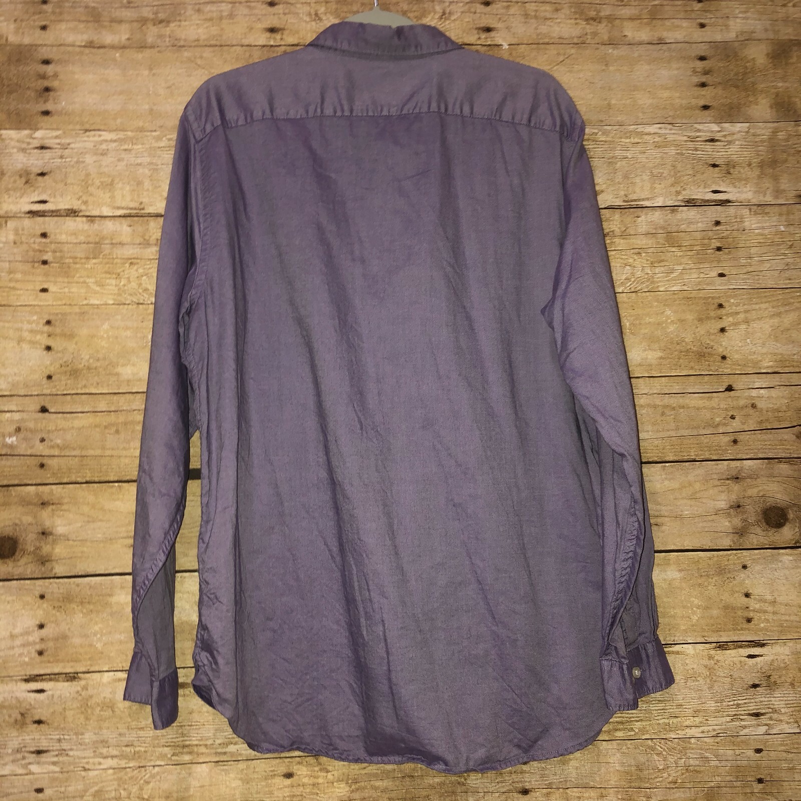 7 For All Mankind Men's Shirt XL Long Sleeve Purple Button Up Oxford Classic