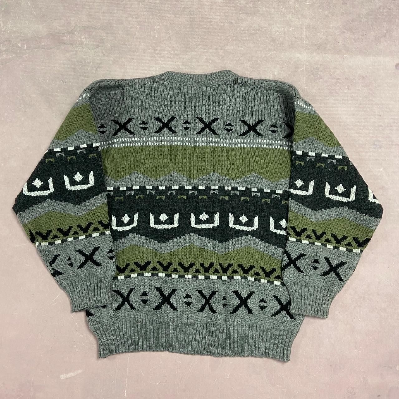 как выглядит Vintage Knitted Jumper Abstract Patterned Grandad Knit Sweater Men