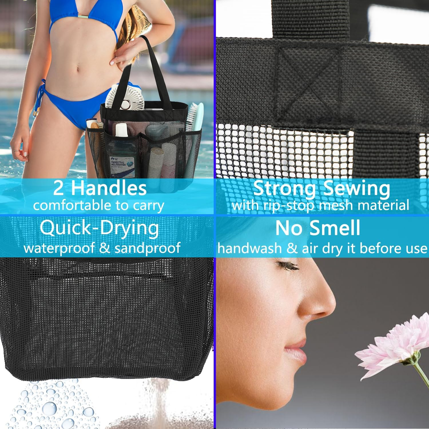 Mesh Shower Caddy Portable for College Dorm Room Essentials, 8-Pocket Large Show