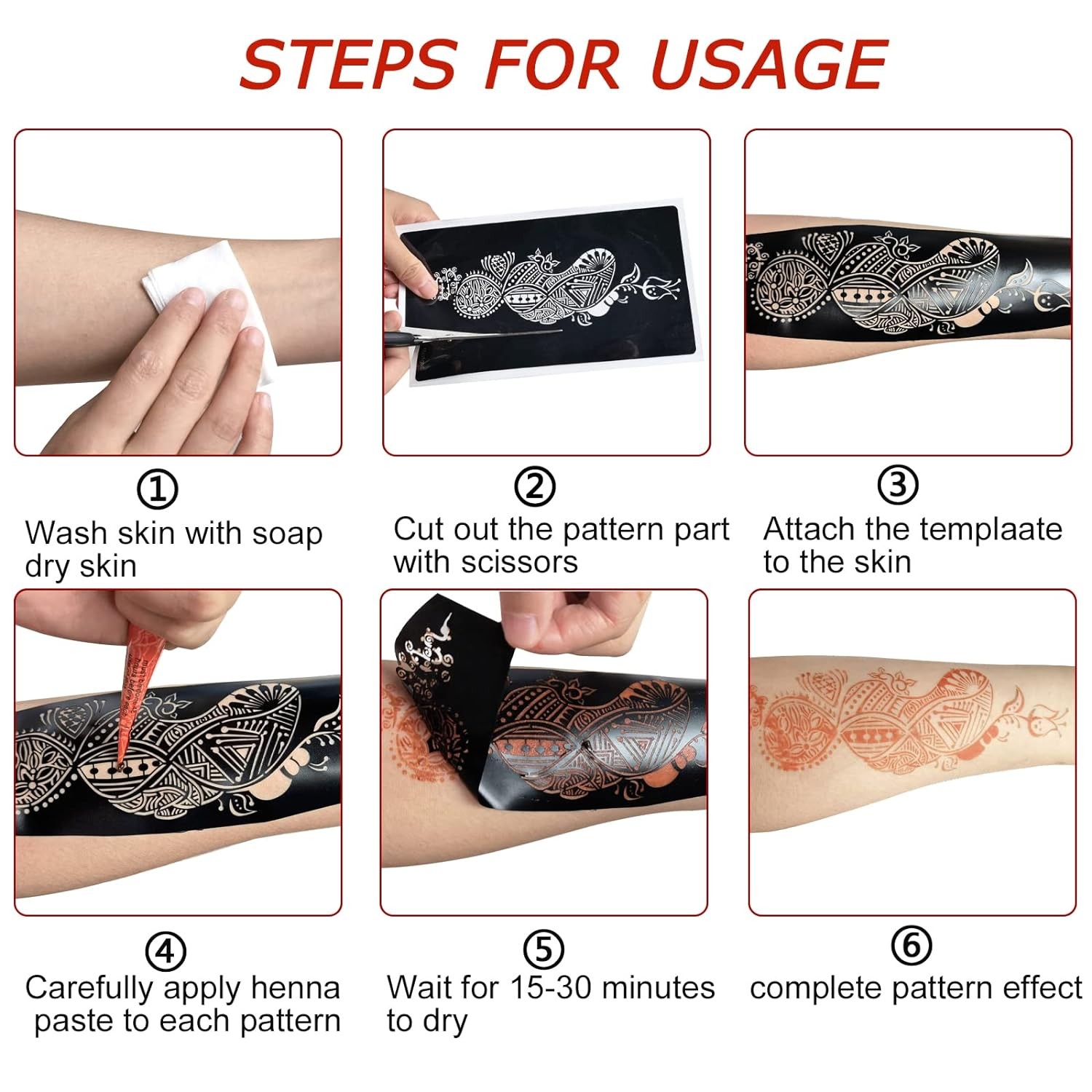 9 Sheet Temporary Tattoo Stencils,Henna tattoo kit Reusable henna Tattoo...