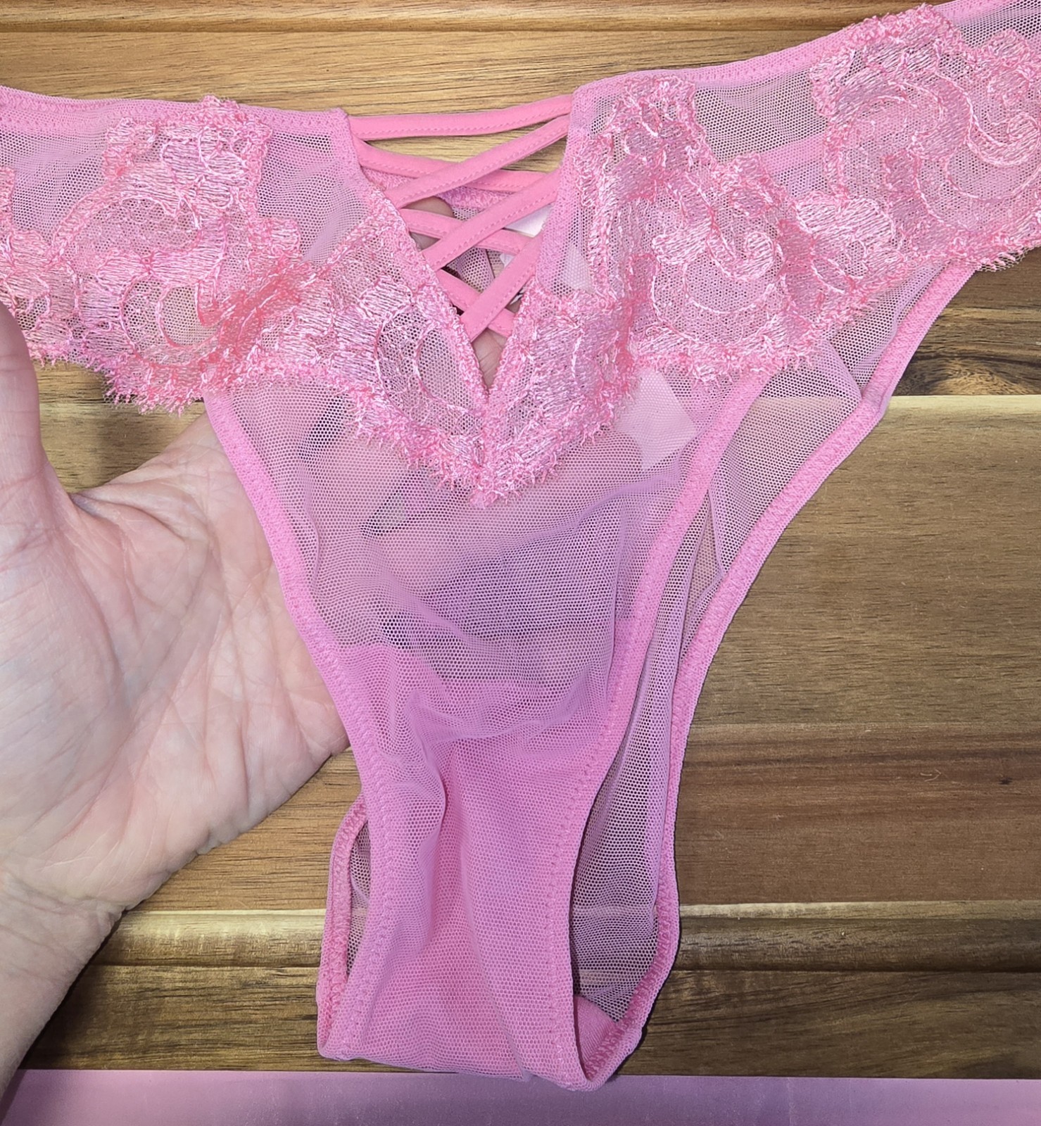 Victorias Secret Dream Angels Boho Floral Embroidered Brazilian Panty Pink M NWT