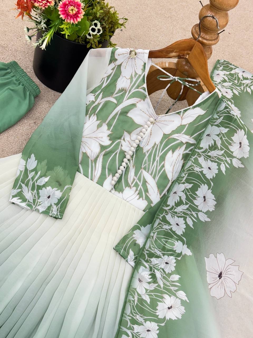как выглядит Latest Faux Georgette Green Salwar Kameez With Dupatta For Party Wear фото