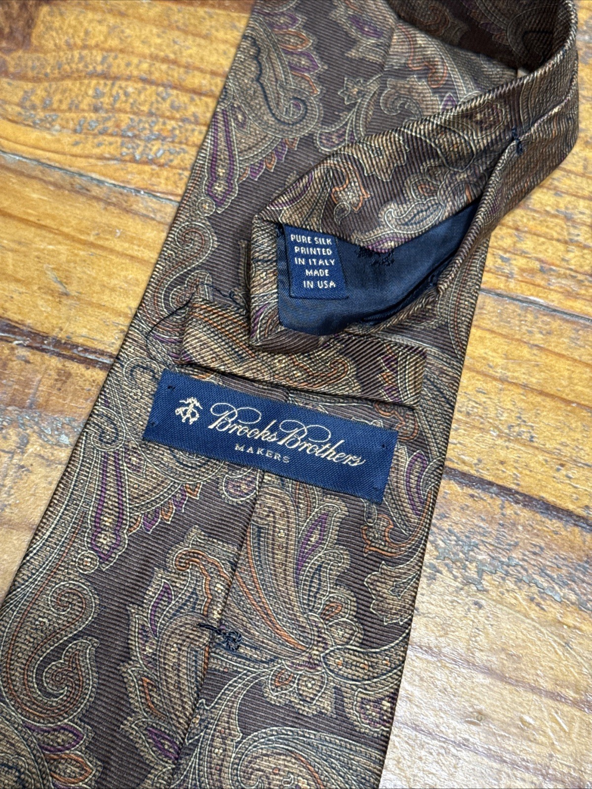 BROOKS BROTHERS MAKERS Vintage 100 Silk Neck Tie, Brown Paisley, USA