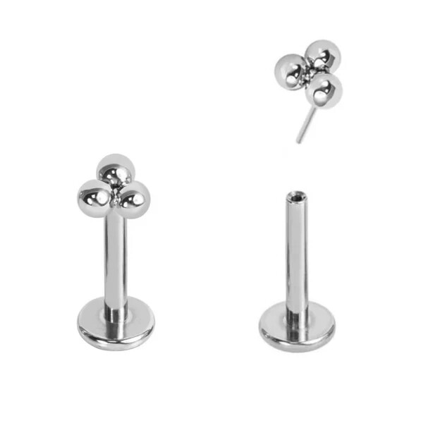 16G 1/4 THREADLESS PUSH IN STEEL Trinity Bead Ear Labret Tragus Flat back Stud