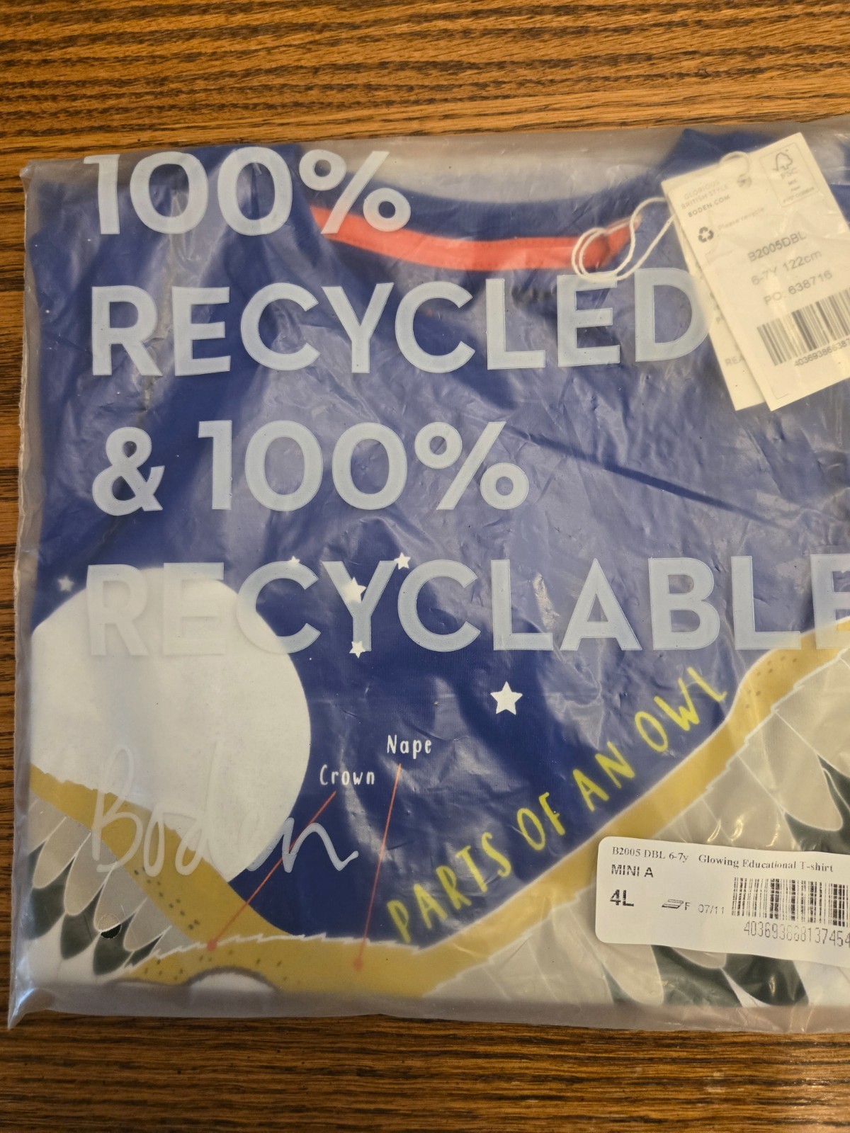 New Mini Boden Parts of the Owl Educational Facts Shirt - Glow in the Dark