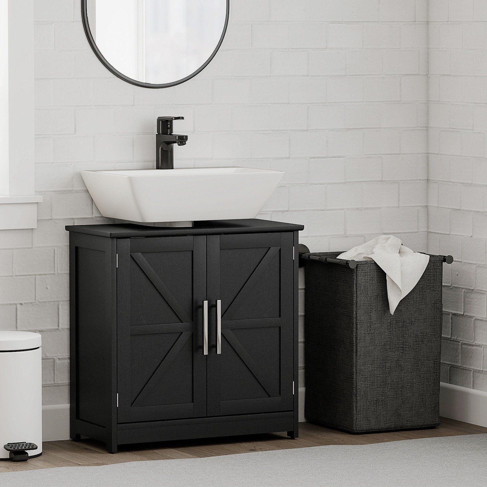 HOMCOM Pedestal Sink Storage Cabinet, Bathroom Sink Cabinet, Distressed Black