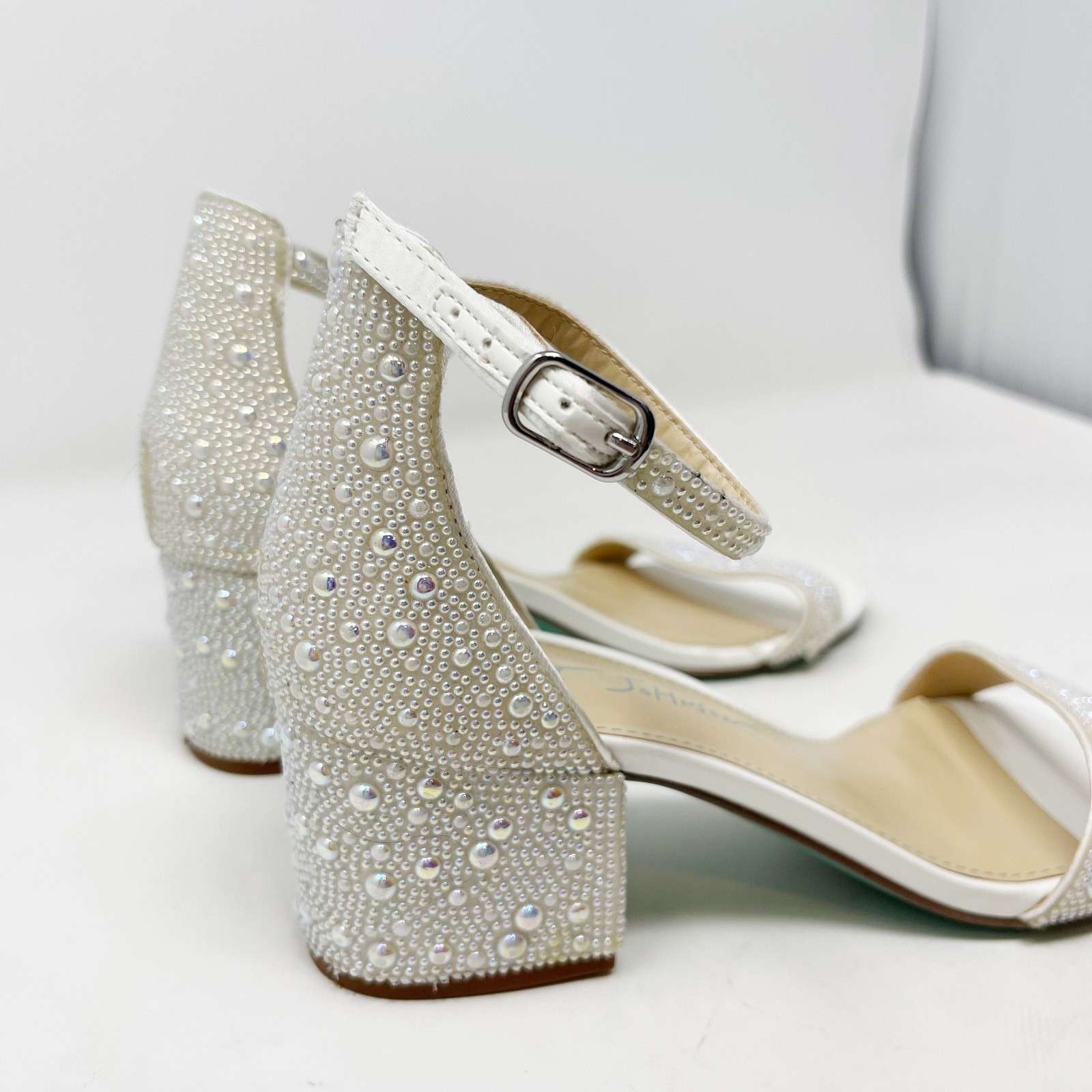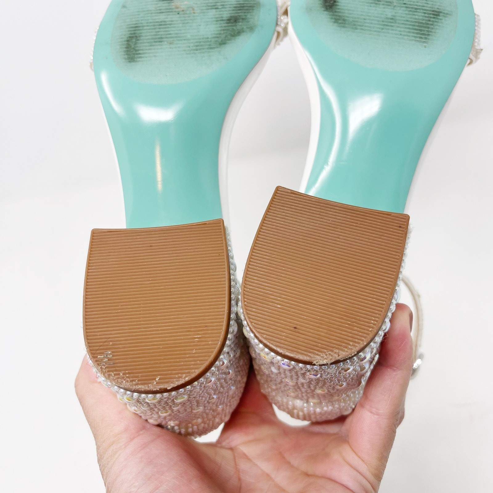 Betsey Johnson 6 White Mari Sandal Rhinestone Block Heel Bridal Bride Open Toe