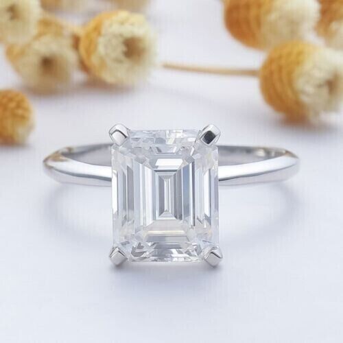 как выглядит 2Ct Emerald Cut Lab Created Diamond Women Engagement Ring 14K White Gold Plated фото