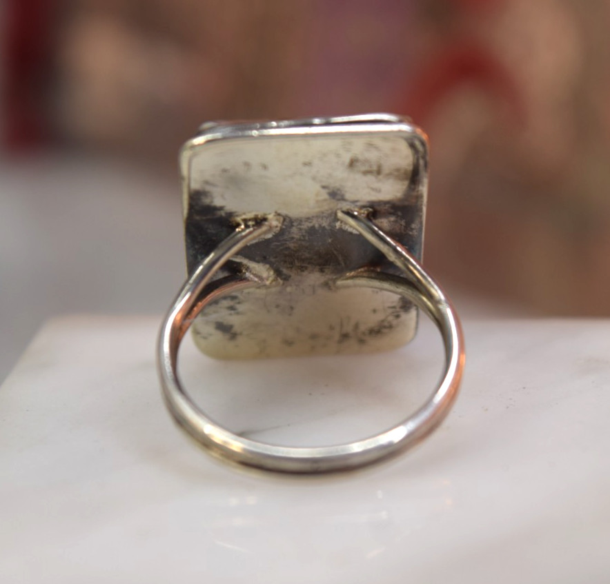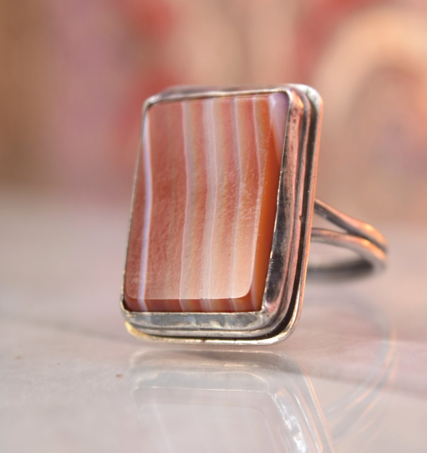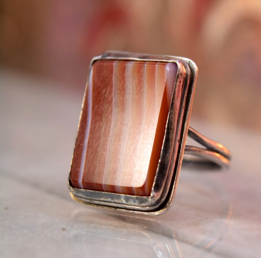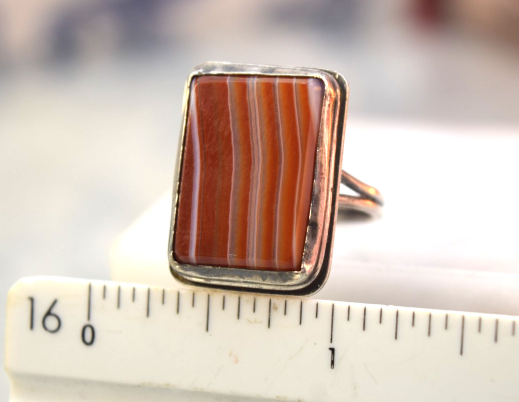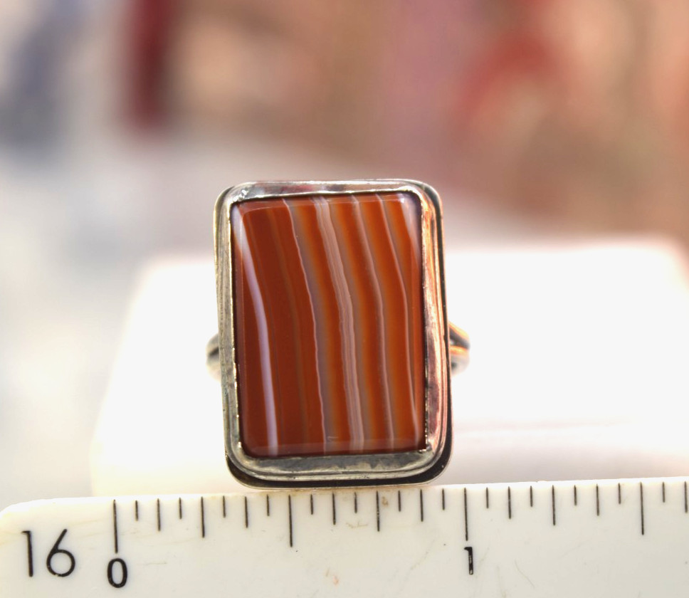 как выглядит Vintage Sterling Orange Red White Banded Agate Ring sz фото