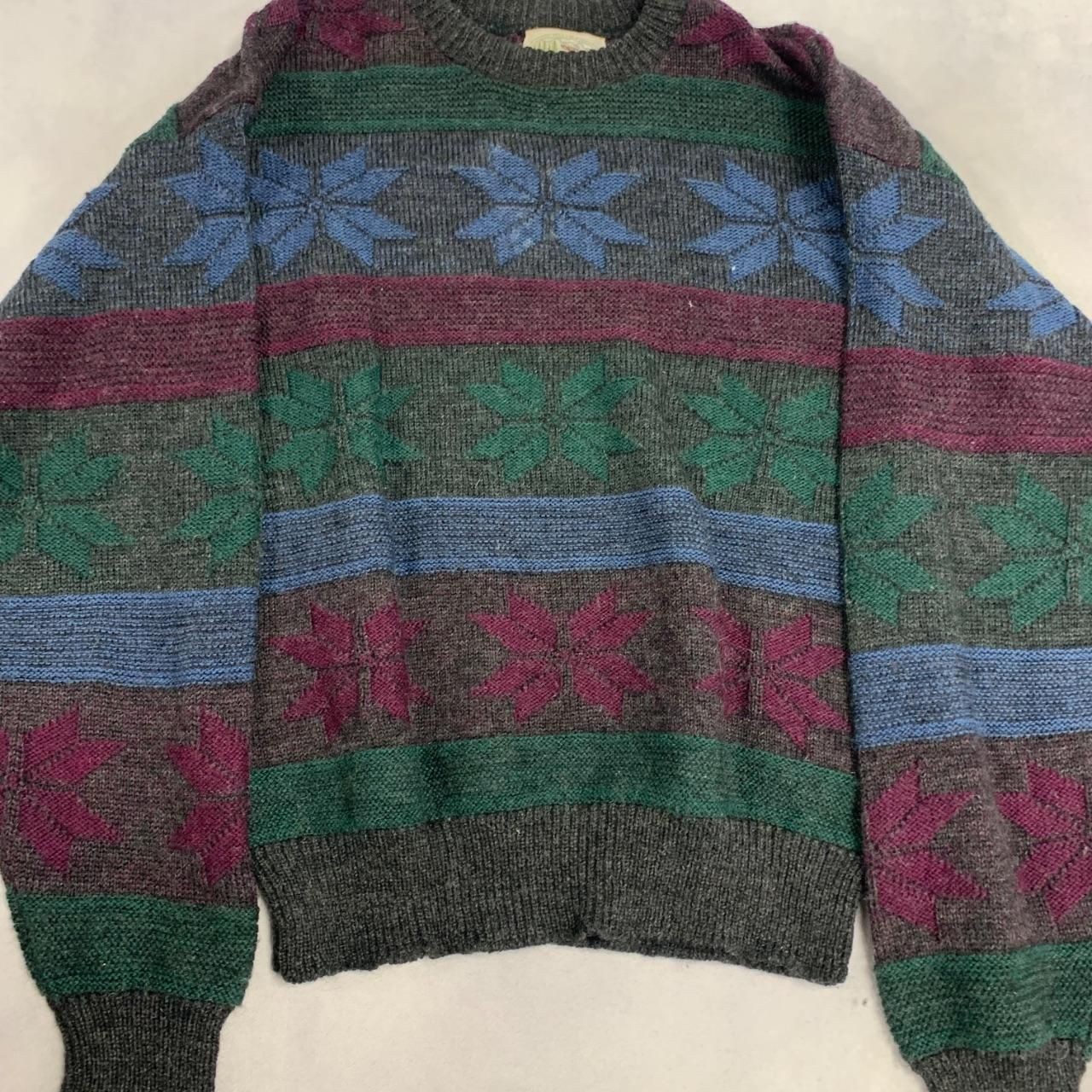 как выглядит Vintage Knitted Jumper Abstract Patterned Grandad Knit Sweater Men