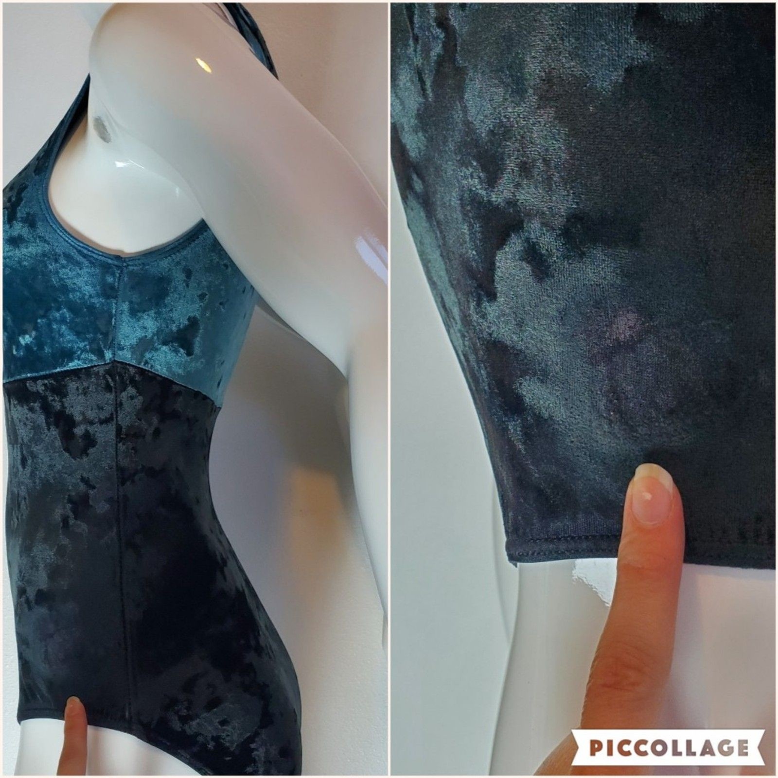 как выглядит Vintage 90s GK Green Black Crushed Velvet Leotard фото