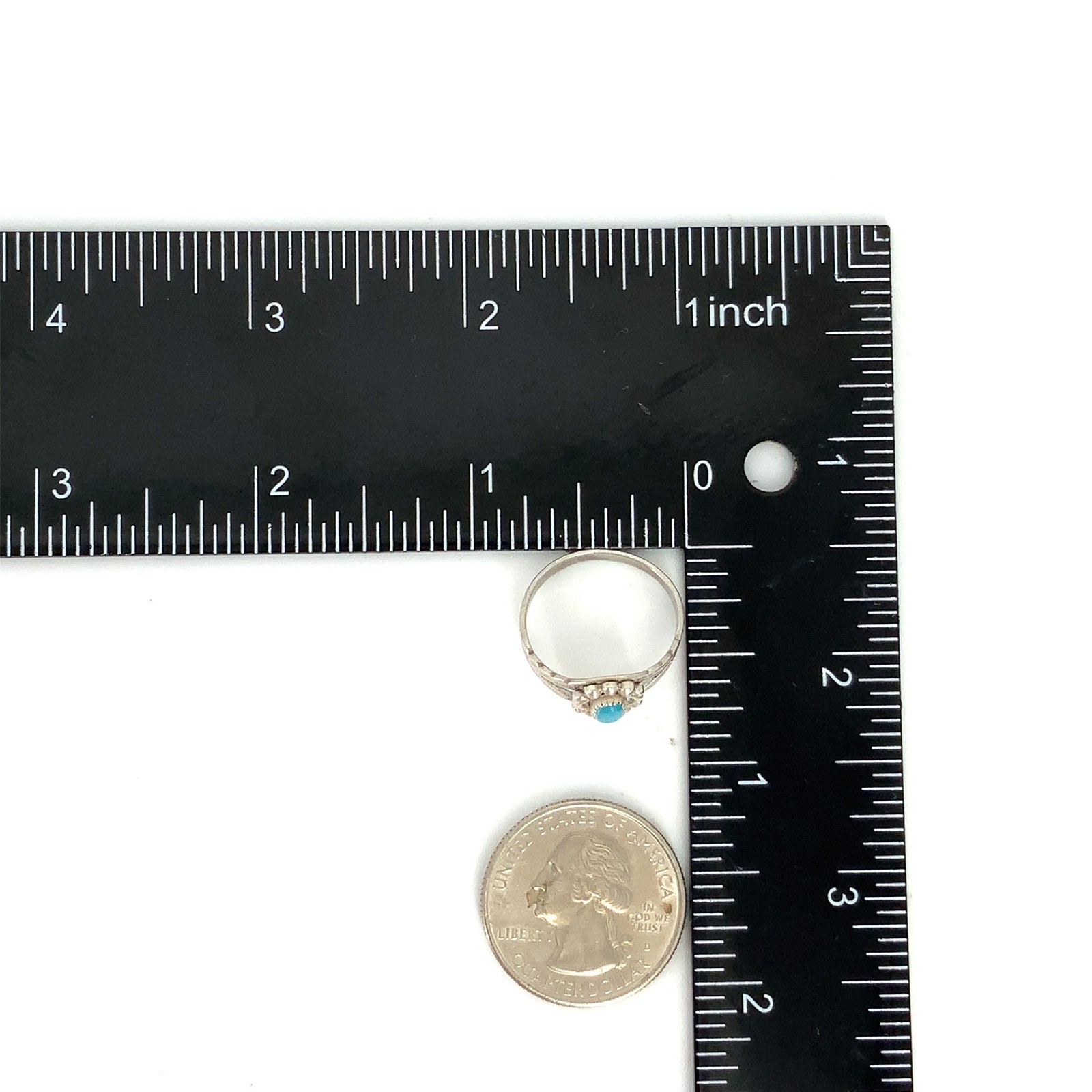 как выглядит Vintage Native American Sterling Silver Oval Turquoise Stone Ring Band sz 5 1/4 фото