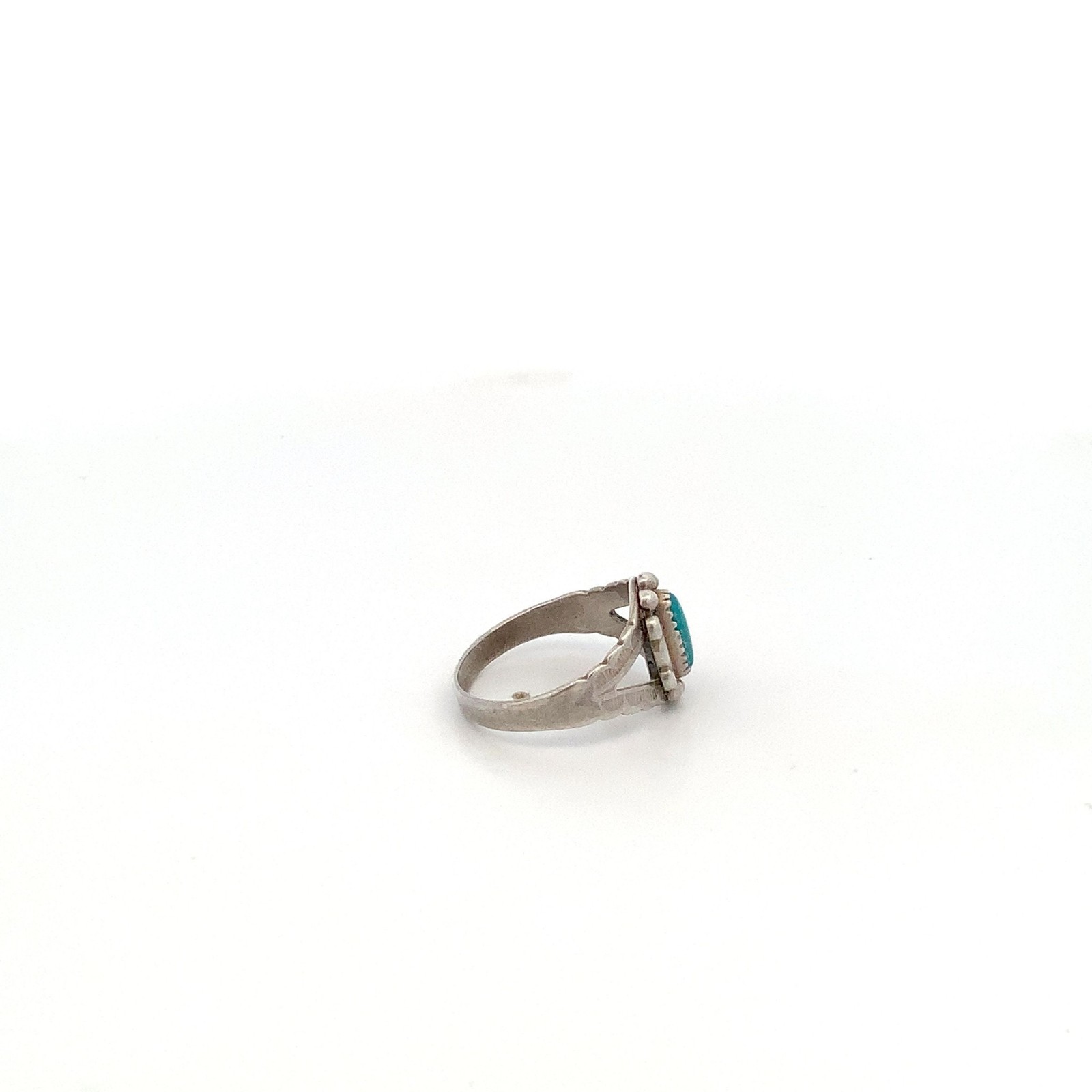 Vintage Native American Sterling Silver Oval Turquoise Stone Ring Band sz 5 1/4