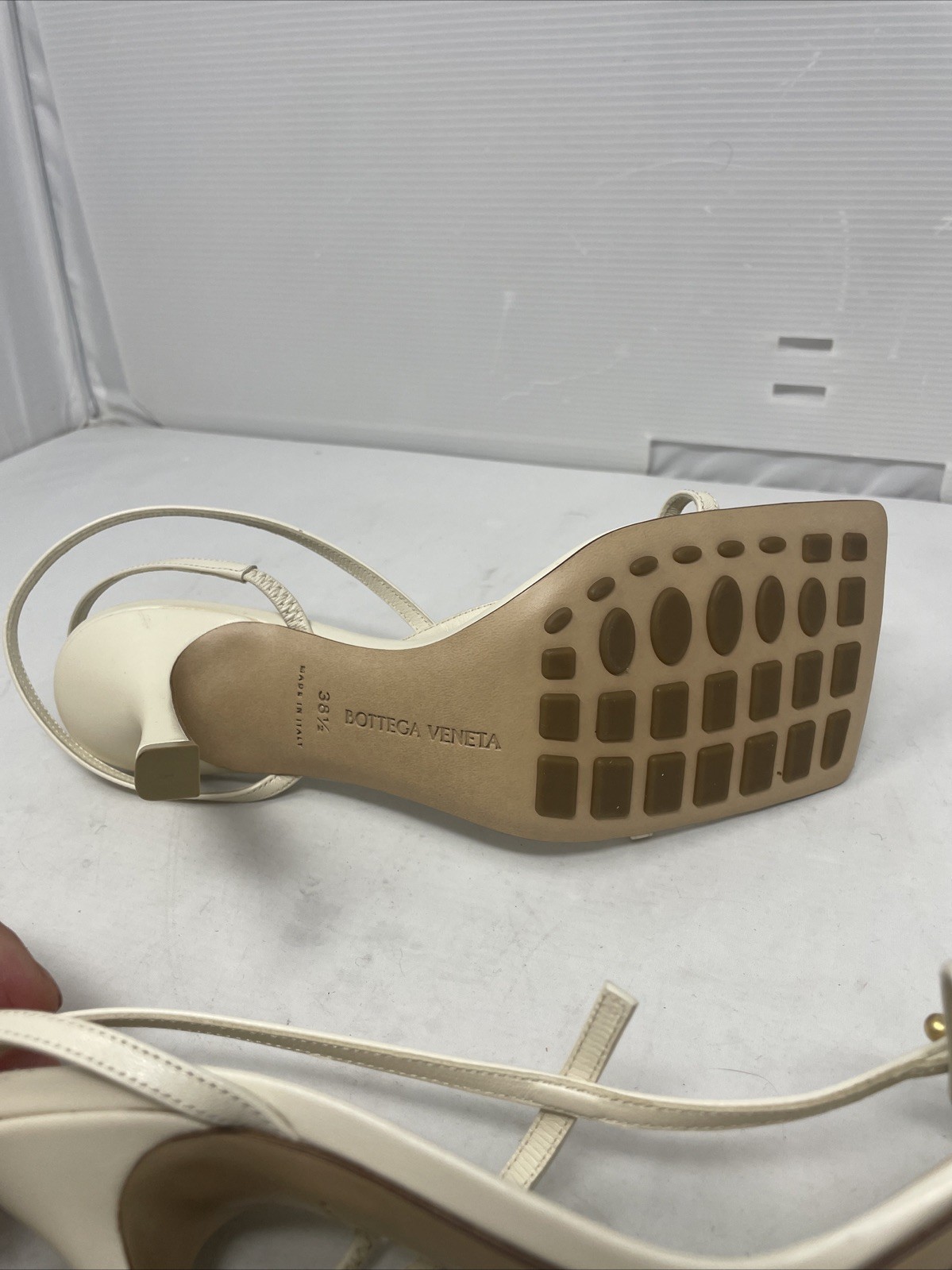 как выглядит Bottega Veneta Neutral Cream Leather Square Toe Stretch Heels Sandal Size 38.5 фото