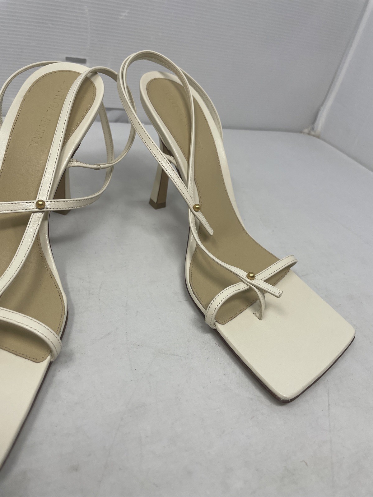 Bottega Veneta Neutral Cream Leather Square Toe Stretch Heels Sandal Size 38.5