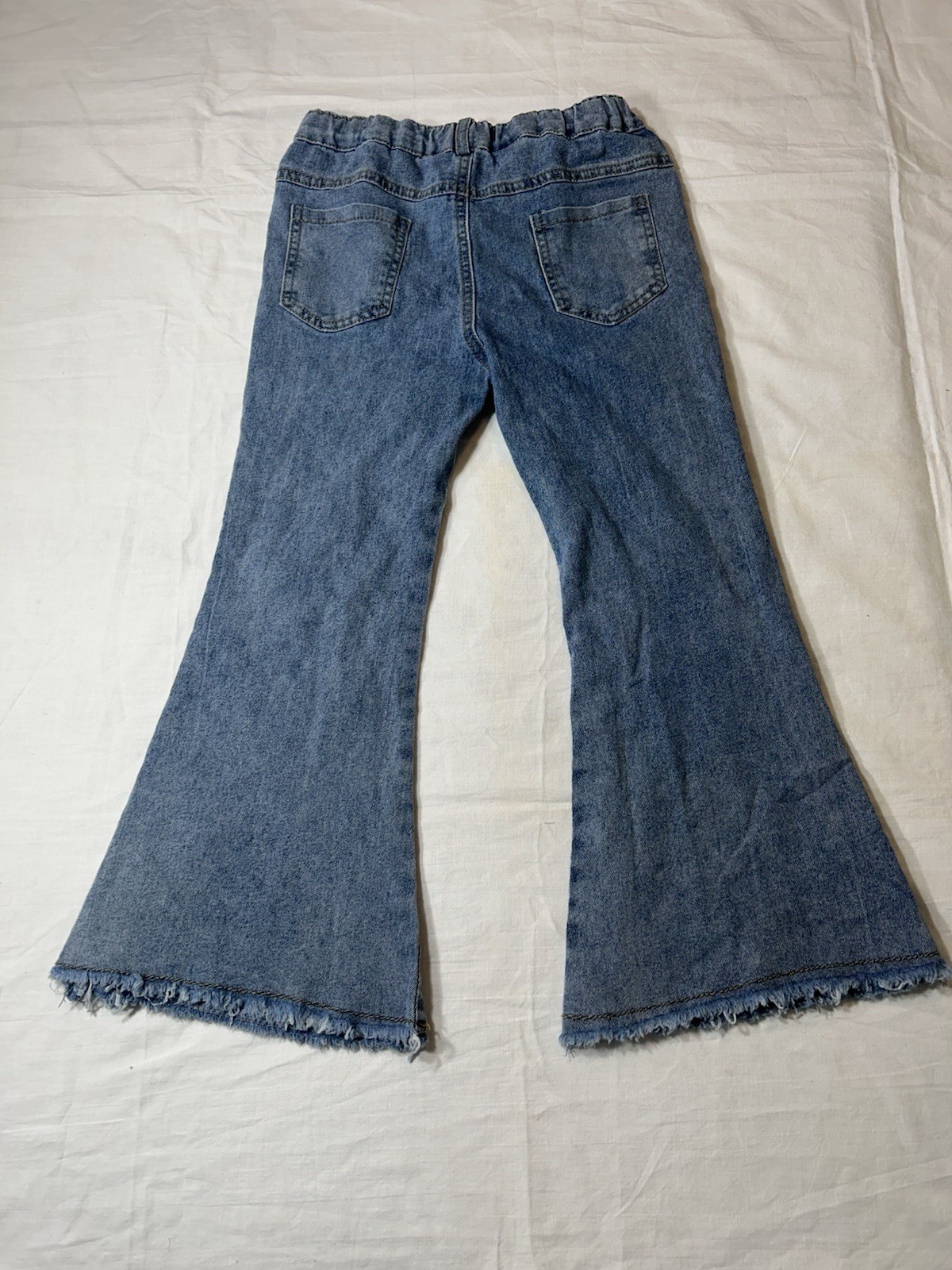 Bell Bottom Jeans Girls Size 3 XL Blue Denim Elastic Waist Split Leg Added Flair